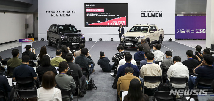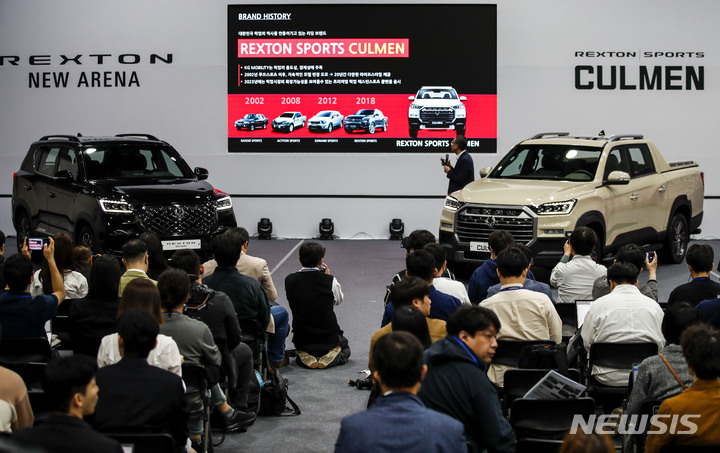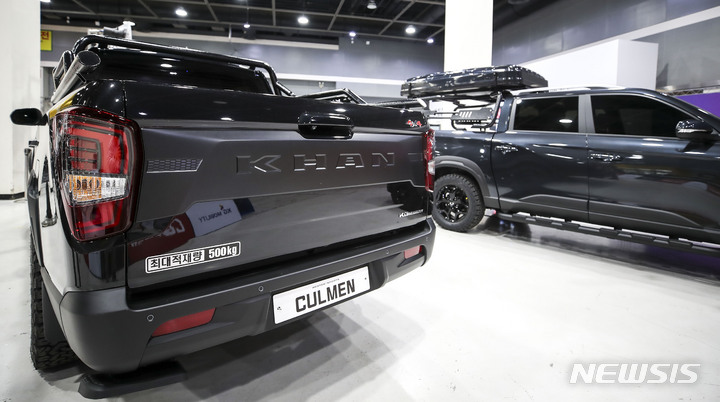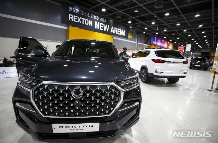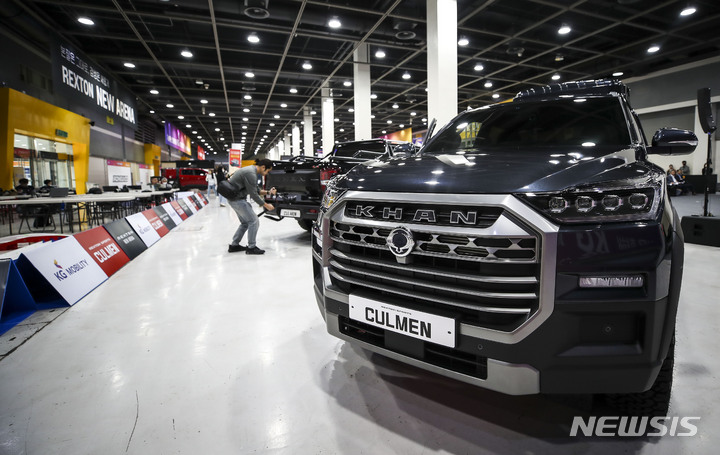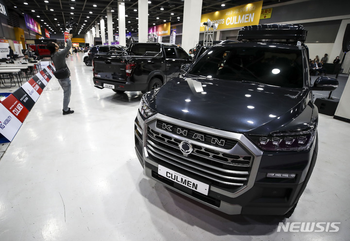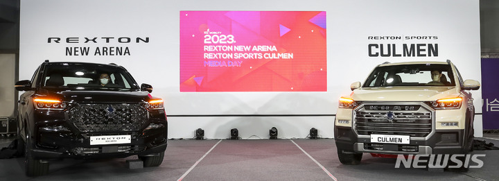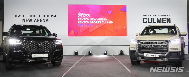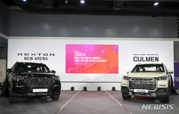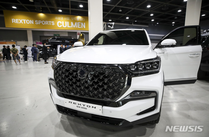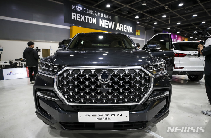 【NEWSIS】3日午前、ソウル市瑞草区のaTセンターで、KGモビリティ(旧:双竜自動車)チューニング・フェスティバルおよびレクストン・ブランド発売イベントが行われた。写真はお披露目された「REXTON NEW ARENA(レクストン・ニュー・アリーナ)」と「REXTON SPORTS & KHAN CULMEN(レクストン・スポーツ&カーン・クールメン)」。