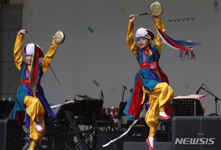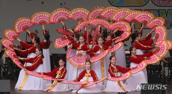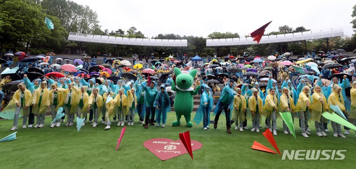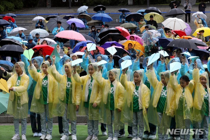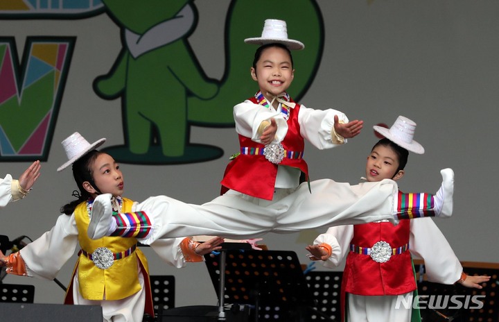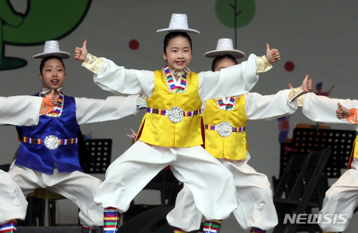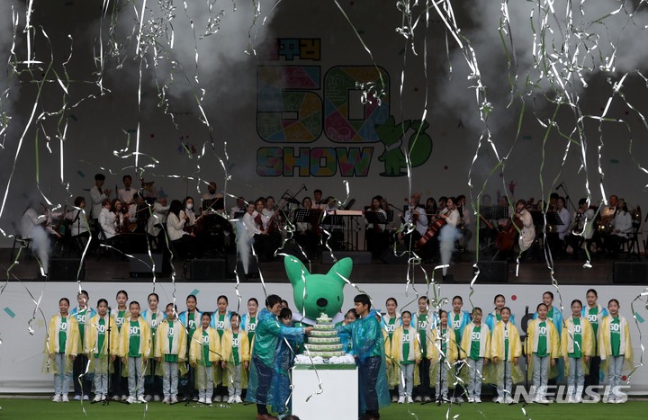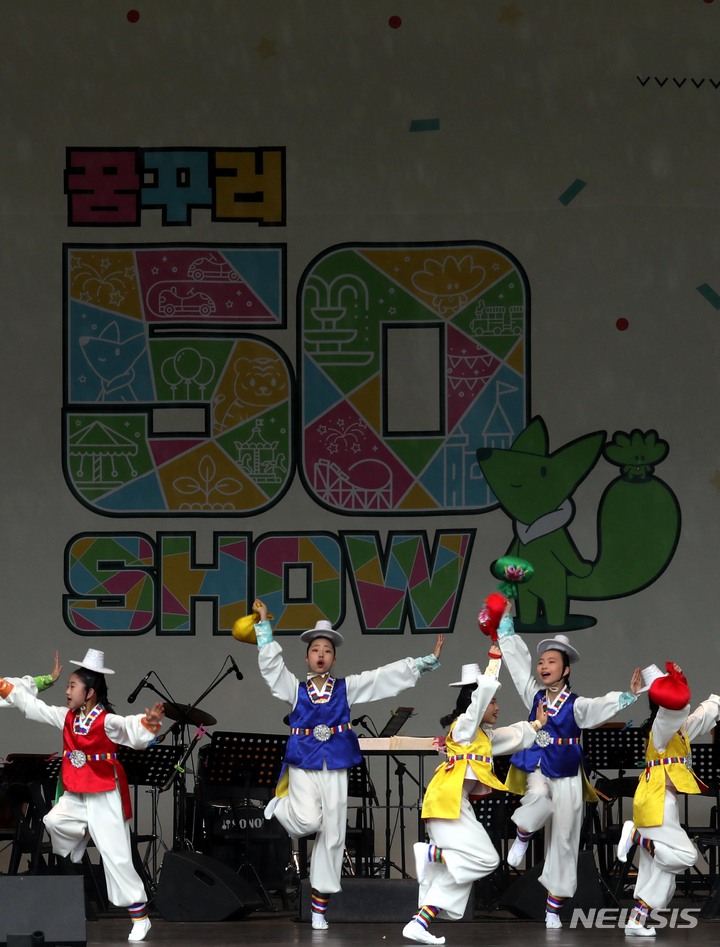 6日午前、ソウル子ども大公園(ソウル市広津区)の「森の中の舞台」で開かれた子ども大公園開園50周年記念行事「夢見る50ショー」で、リトルエンジェルス芸術団が素敵なステージを披露している。