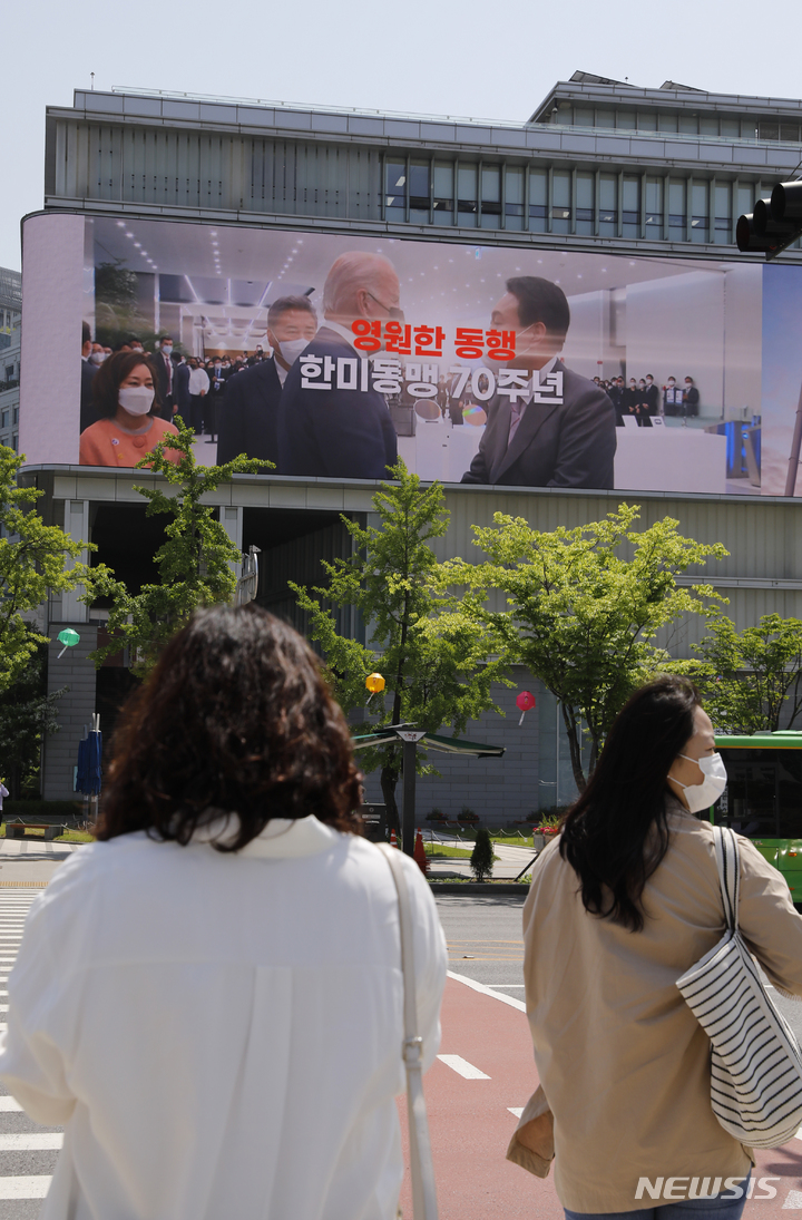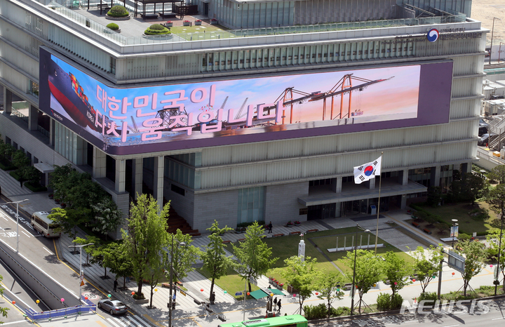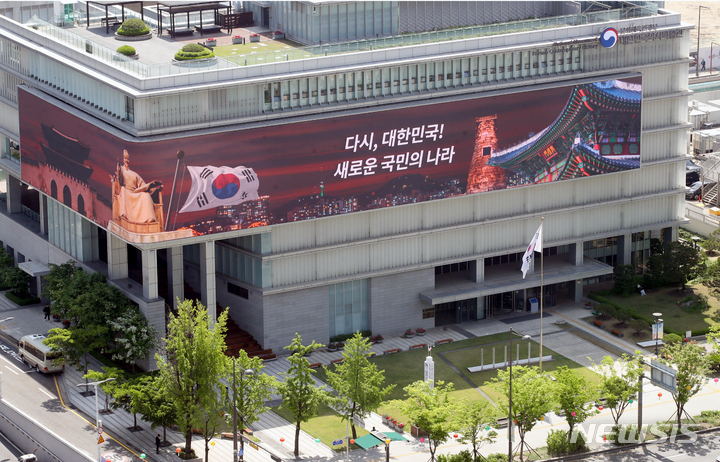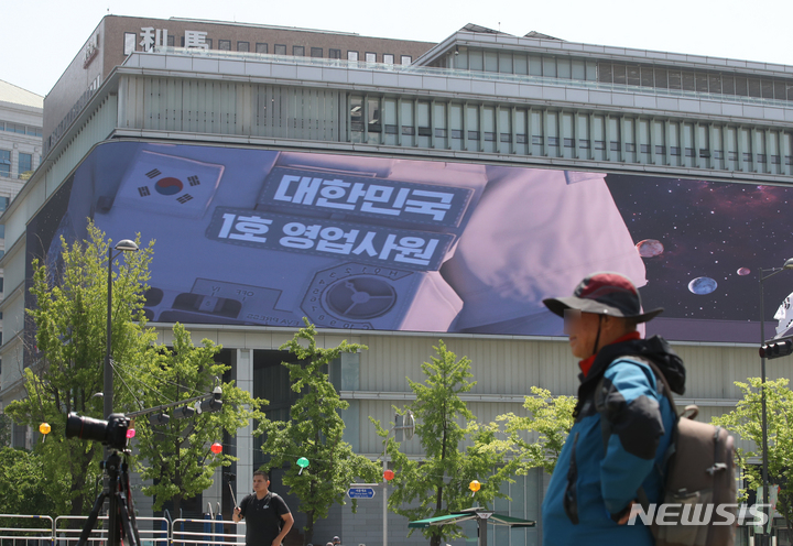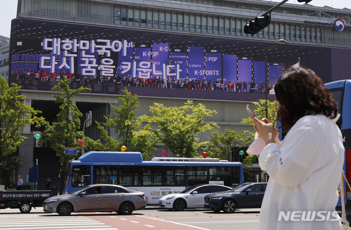 尹錫悦(ユン・ソンニョル)大統領就任1周年を迎えるに当たり、大韓民国歴史博物館(ソウル市鍾路区)のKカルチャー・スクリーンで9日午前、韓国の宇宙・防衛・輸出・先端技術・文化産業などのビジョンが込められた「国政ビジョン国民共感」3Dアナモルフィック・メディアアート映像が流れている。