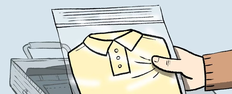 旅行の荷物をまとめる時、ほかの荷物の汚れや色が付く恐れがあるので、淡い色の服はファスナー付きビニール袋に入れたり、裏返したりしてカバンに入れた方がいい。