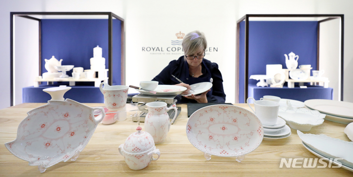 韓国ロイヤルコペンハーゲンが10日、アートスペース3(ソウル市鍾路区)のギャラリーでニューカラー発表を記念した展示を行い、デンマークから匠を招待し、コーラル・コレクションの手描き作業の過程を公開した。