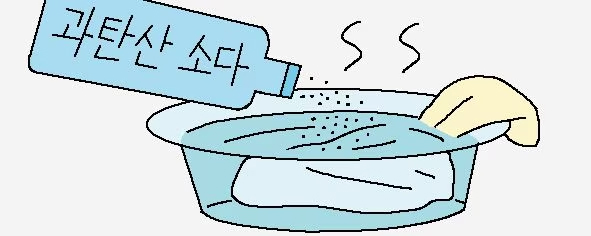 黄色く変色してしまった服は、お湯に過炭酸ソーダを溶かし、30分以上浸してから洗濯機で洗うと白くなる。