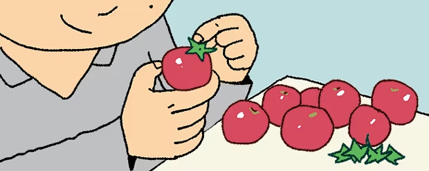 ミニトマトはへたを取っておくと長持ちする。よく洗ってからキッチンペーパーで水気をしっかり取り、冷蔵しておく。