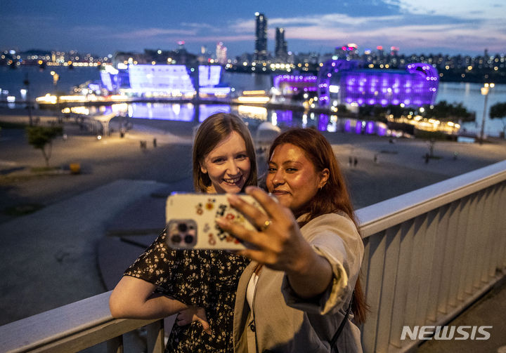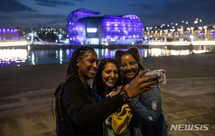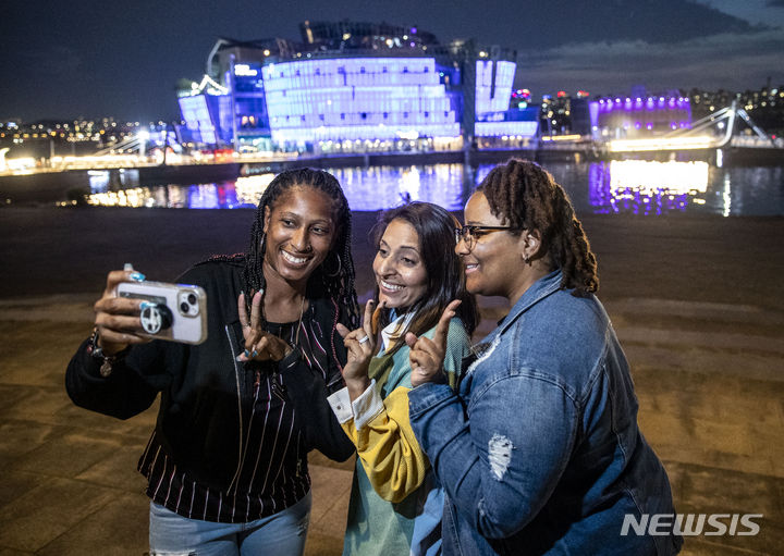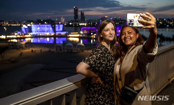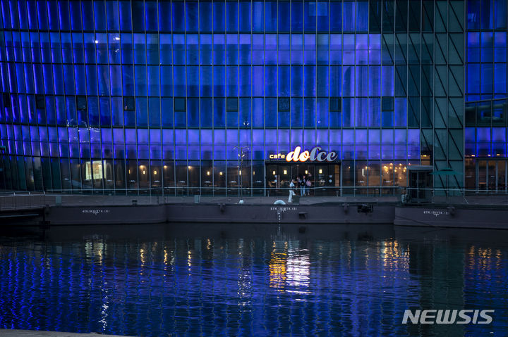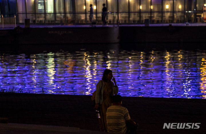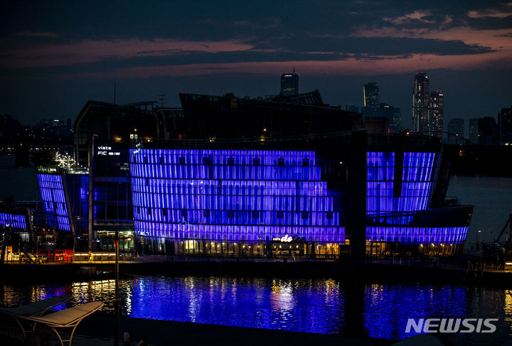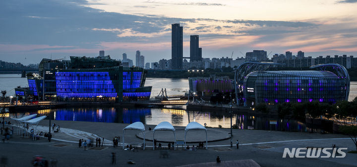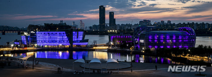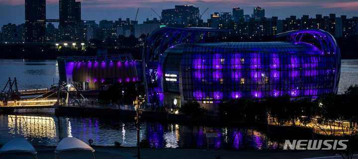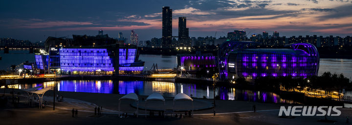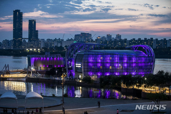 【NEWSIS】世界的な人気を誇る韓国の人気男性アイドルグループBTS(防弾少年団)がデビュー10周年を迎える前日の12日、ソウル市瑞草区の漢江にある複合文化スペース「セビッ島」がBTSのシンボルカラーである紫色にライトアップされた。