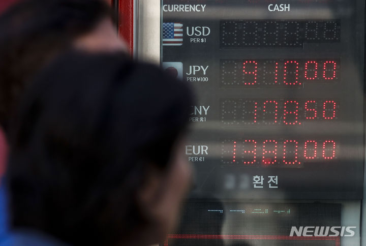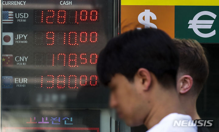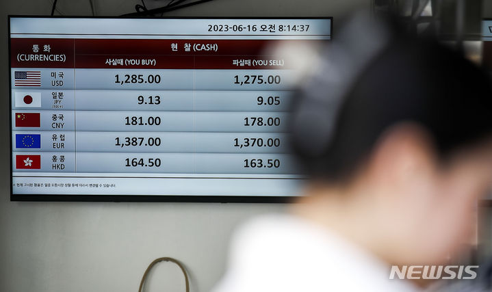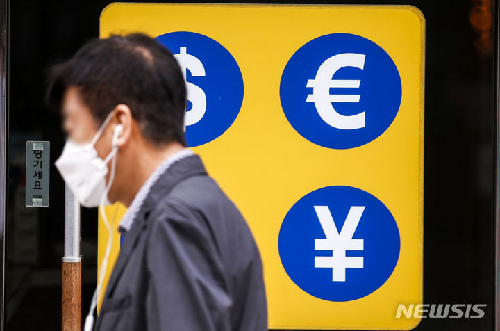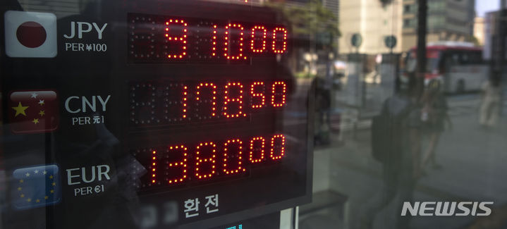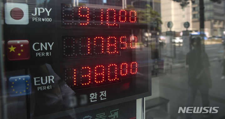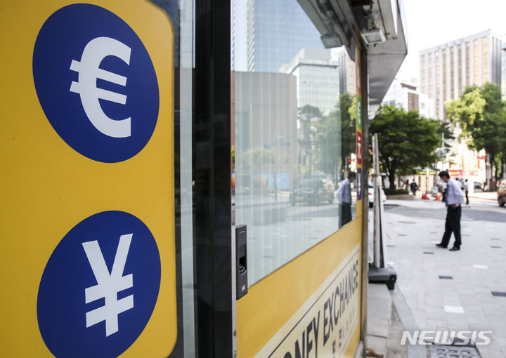 【NEWSIS】15日、円対ユーロの為替レートは1ユーロ=152円台という値動きで取引された。これは2008年9月以来、約15年ぶりの対ユーロ円安だ。一方、円対ドルの為替レートも1ドル=141.316円となり、昨年11月以降で最も円安が進んだ。写真は円安が続いている16日午前、ソウル市内にある両替所の電光掲示板に表示された為替レート。