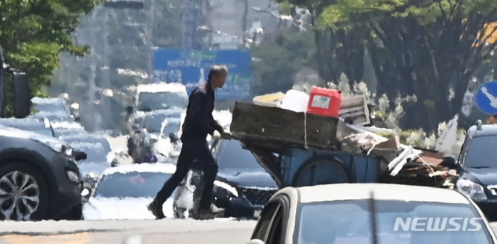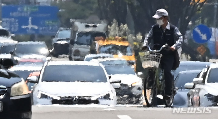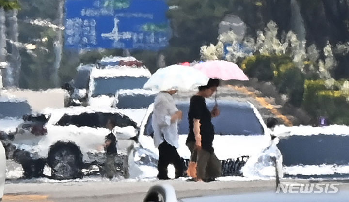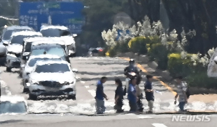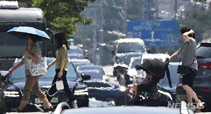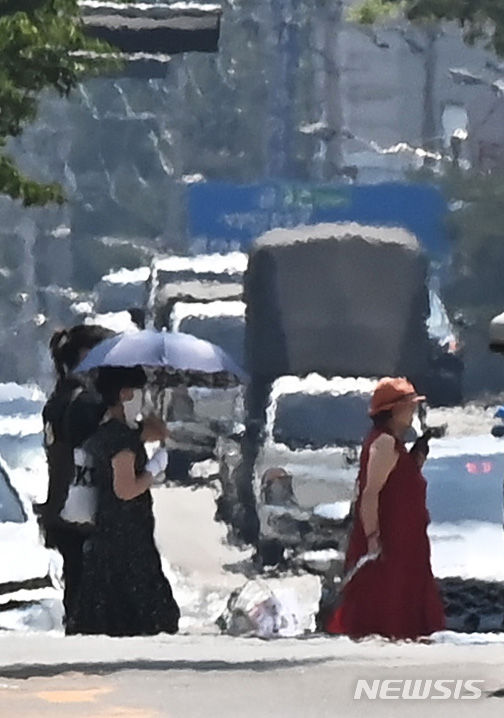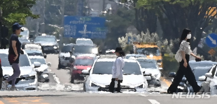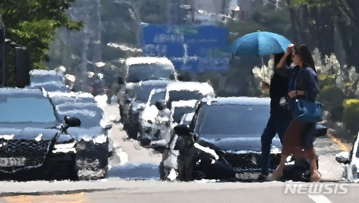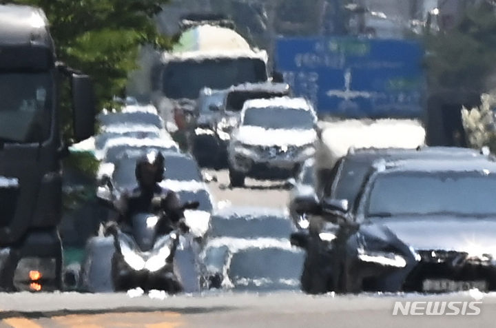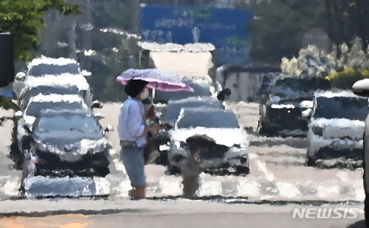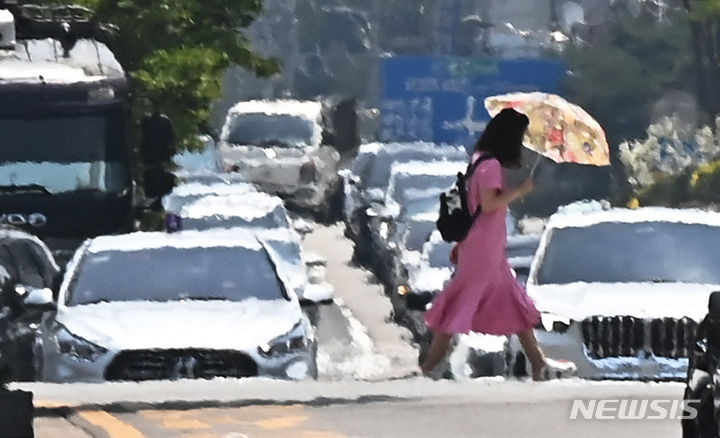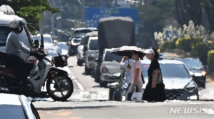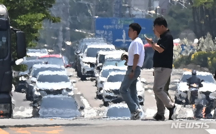 韓国各地に猛暑特報が発令された19日、京畿道水原市仁溪洞では、熱を帯びた路面から陽炎が立ち上っていた。