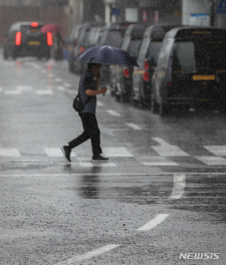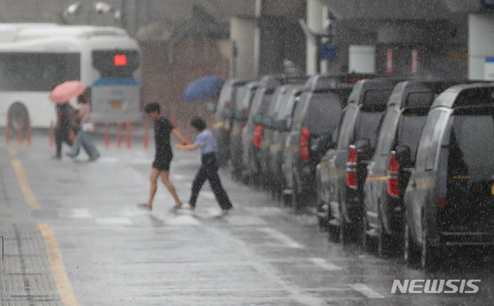 「梅雨入り」…激しい雨の中、カートを押す観光客 /済州