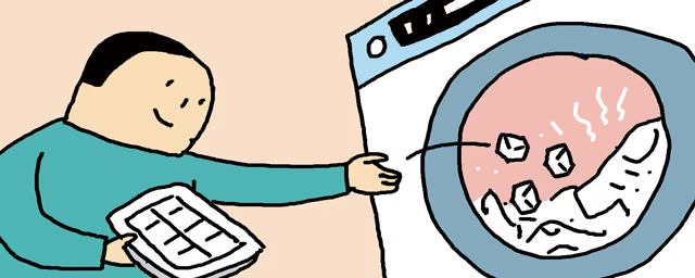 服がしわくちゃになのにアイロンがないという時は、氷を使う方法がある。しわくちゃの服と氷を2・3個入れてから乾燥機で乾燥させるとシワが伸びる。