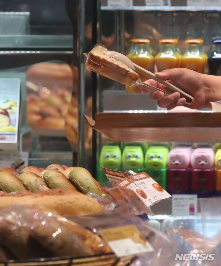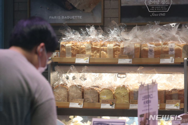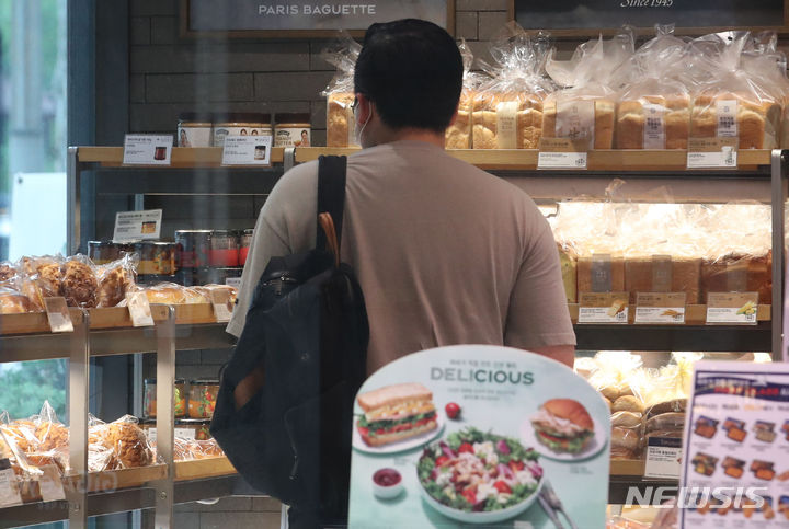 パリ・バゲット、ダンキン、SPC三立などを運営するSPCが、7月初めから順次パンの価格を引き下げる。引き下げの対象は食パン類とクリームパン、バゲットなど30品目で、平均引き下げ率は5%だ。パリ・バゲットは、食パンとバゲットを含め計10種類についてそれぞれ100~200ウォン(現在のレートで約11~22円)値下げする。写真は29日午後、ソウル市内のパリ・バゲットの様子。