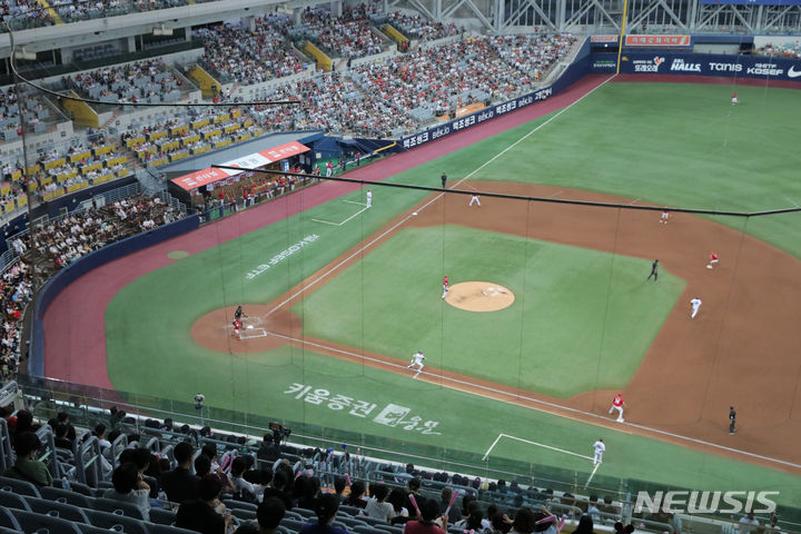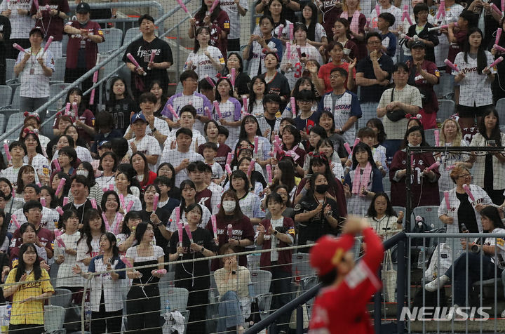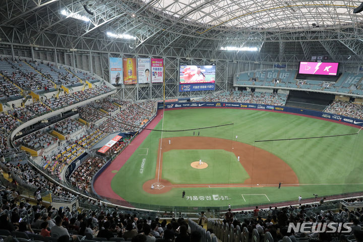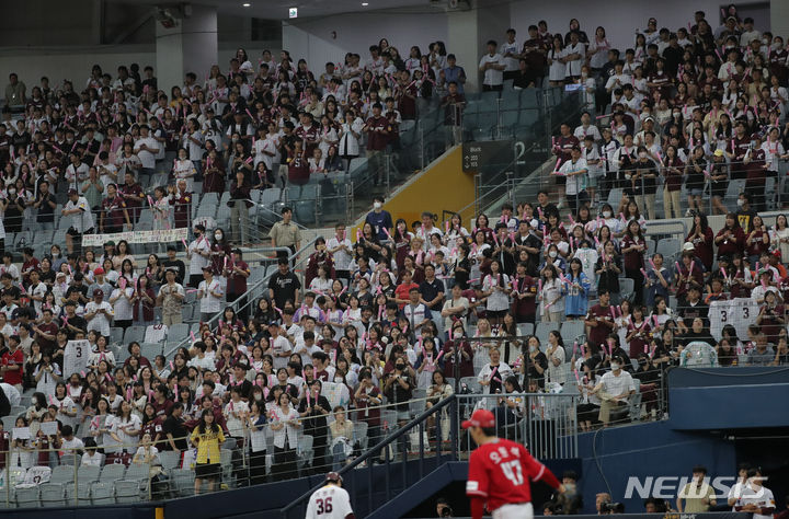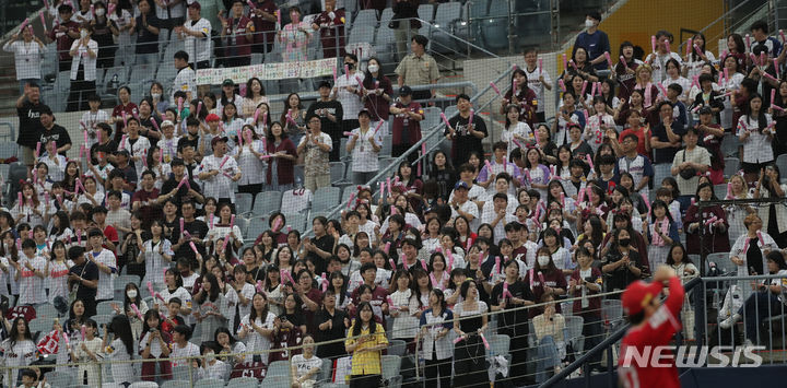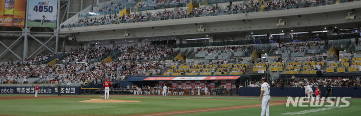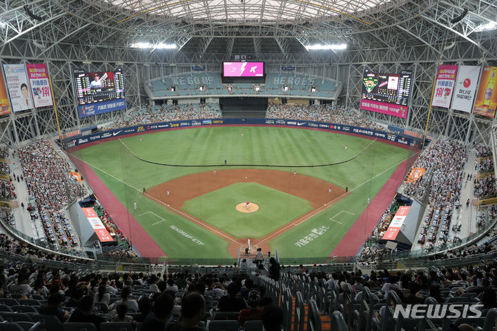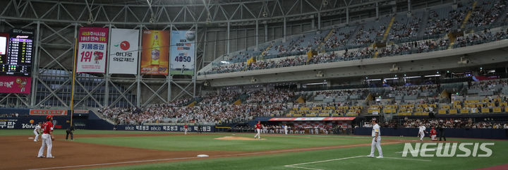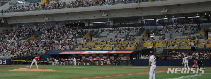 【NEWSIS】2023年の韓国プロ野球公式戦入場者数が400万を突破し、新型コロナウイルス感染症流行前の水準に回復した。写真は2日、ソウル市九老区の高尺スカイドームで行われた2023韓国プロ野球SSGランダース対キウム・ヒーローズの試合を観戦する人々。