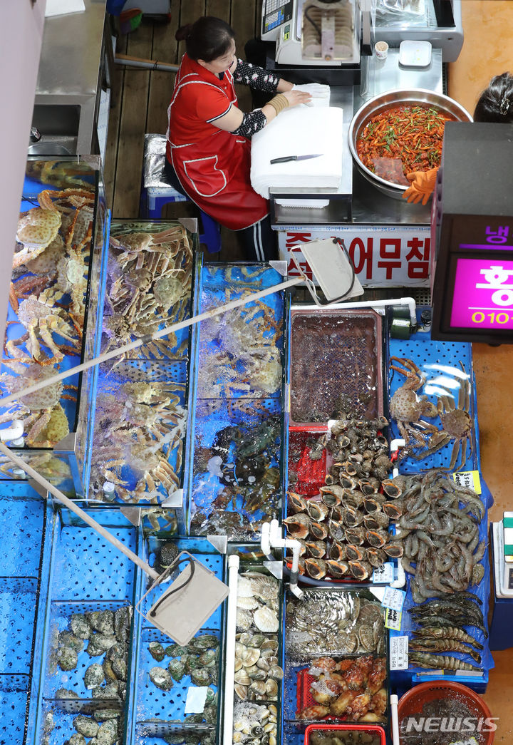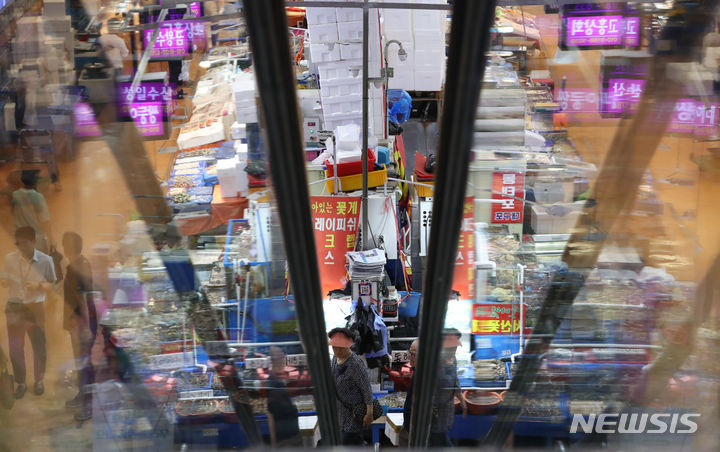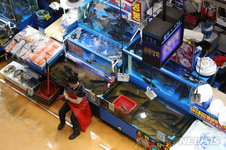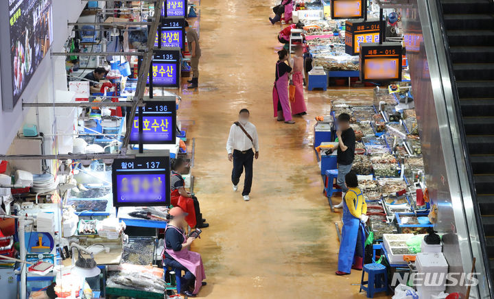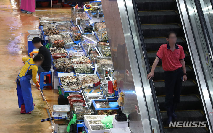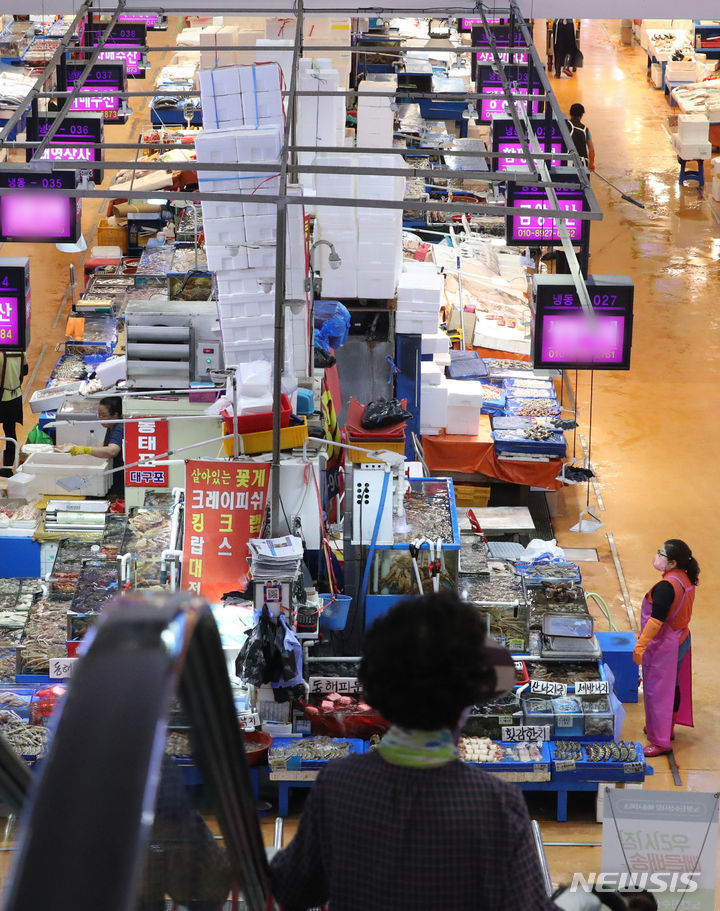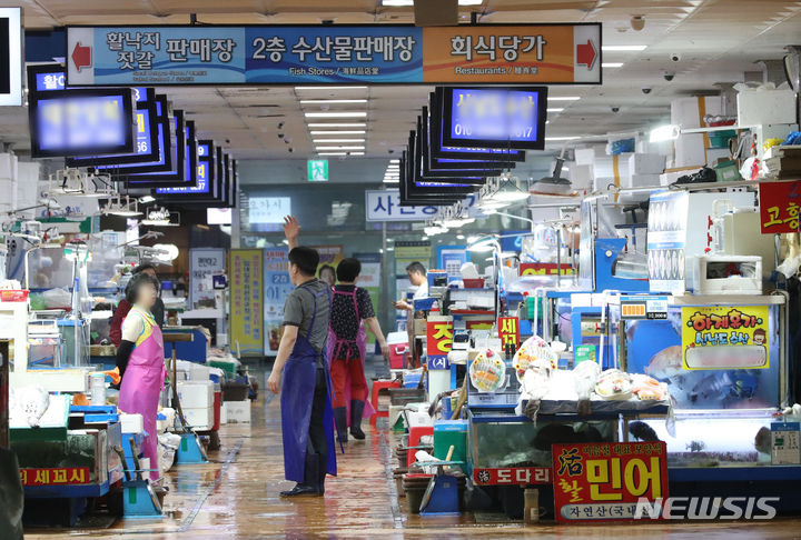 ソウル市銅雀区の鷺梁津水産市場は3日午前、閑散としていた。