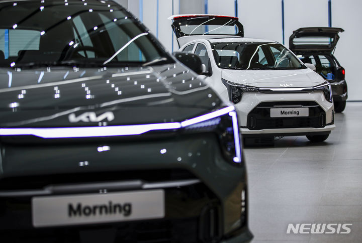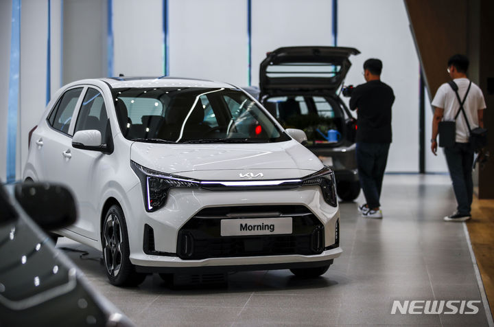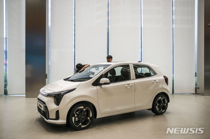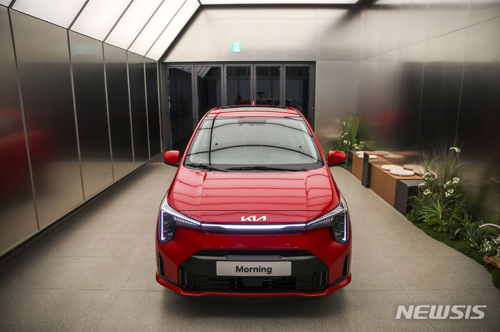 【NEWSIS】4日午前、仁川市弥鄒忽区の起亜仁川フラッグシップ・ストアで、起亜自動車の小型乗用車「ザ・ニュー・モーニング」フォトメディアデー・イベントが開催された。写真は展示中の「ザ・ニュー・モーニング」。