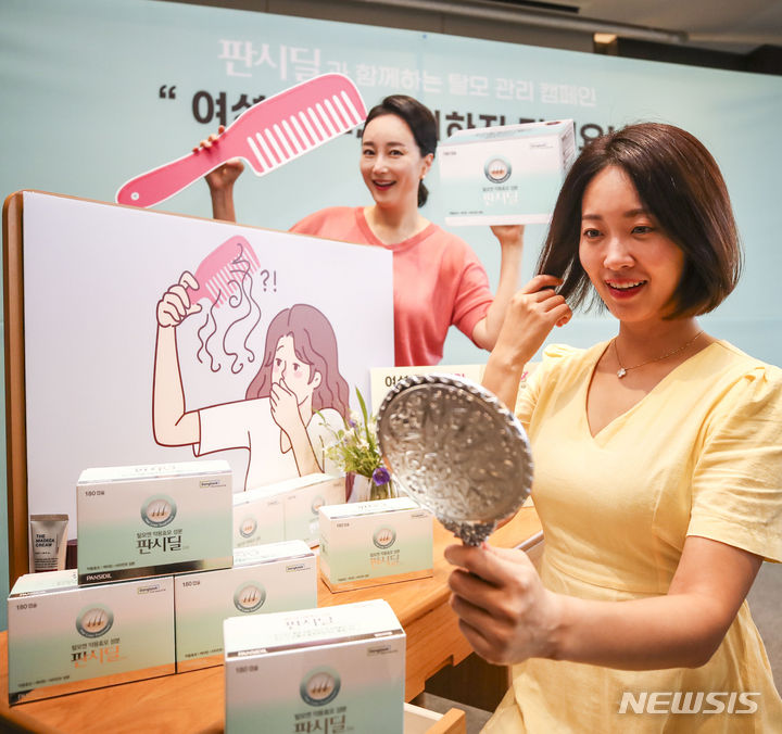 【NEWSIS】11日、ソウル市中区のザ・プラザ・ホテルで、東国製薬の脱毛治療薬「PANSIDIL(パンシディル)」を紹介する「パンシディルとご一緒に 女性のための抜け毛ケア・キャンペーン」が行われた。