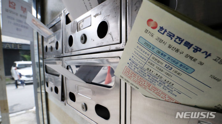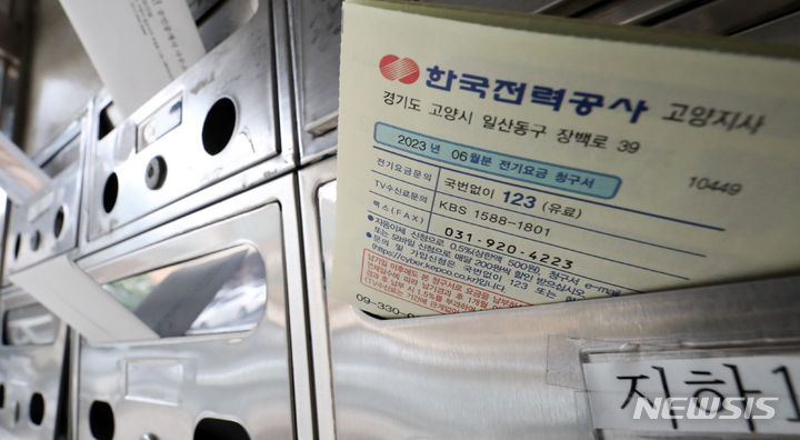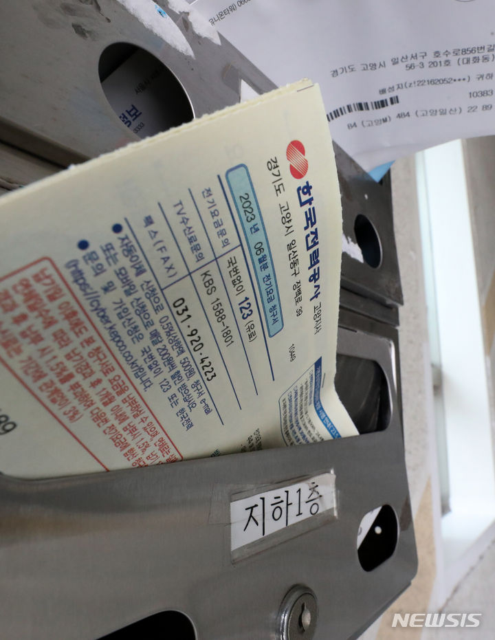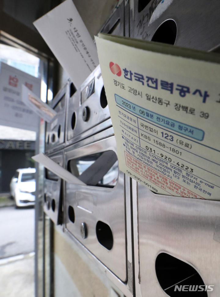 テレビ受信料と電気料金の分離納付が可能になった12日午後、京畿道高陽市のある集合住宅で、郵便受けに差し込まれた電気料金の請求書の様子。