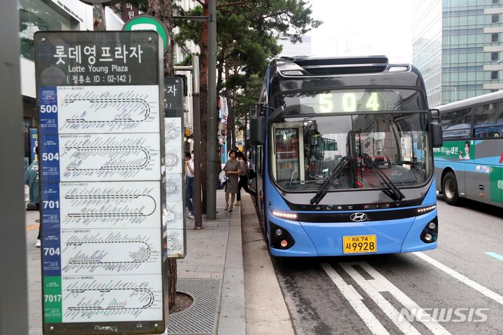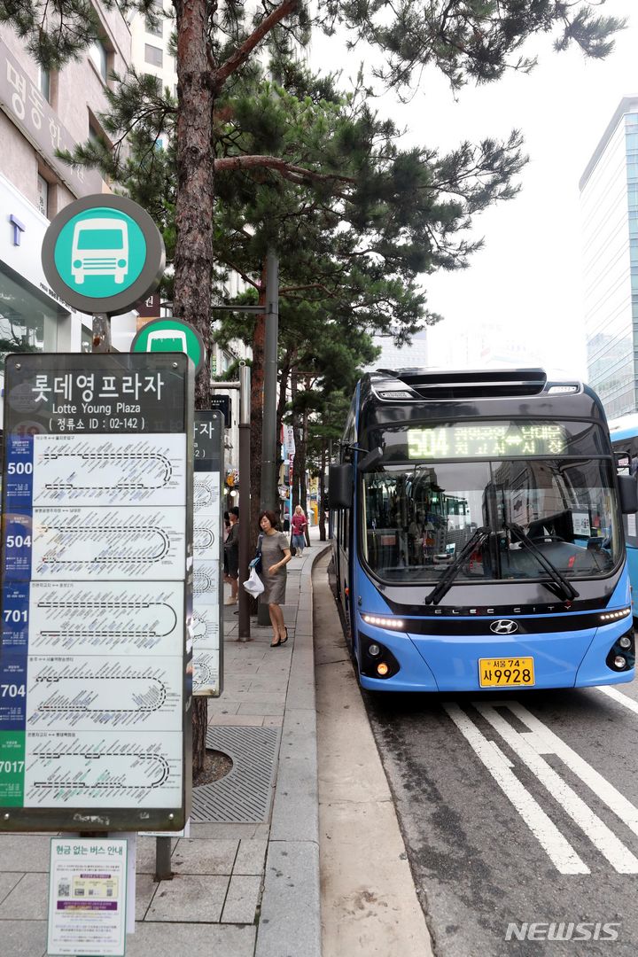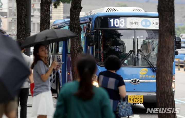 ソウル市は12日、物価対策委員会の審議を通じ、地下鉄運賃を10月7日の始発から150ウォン(約16円)、バス運賃は8月12日の始発から300ウォン(約32円)値上げする「大衆交通料金調整案」を通過させた。写真は13日、ソウル市内のバス停留所の様子。
