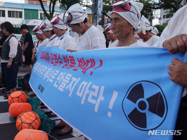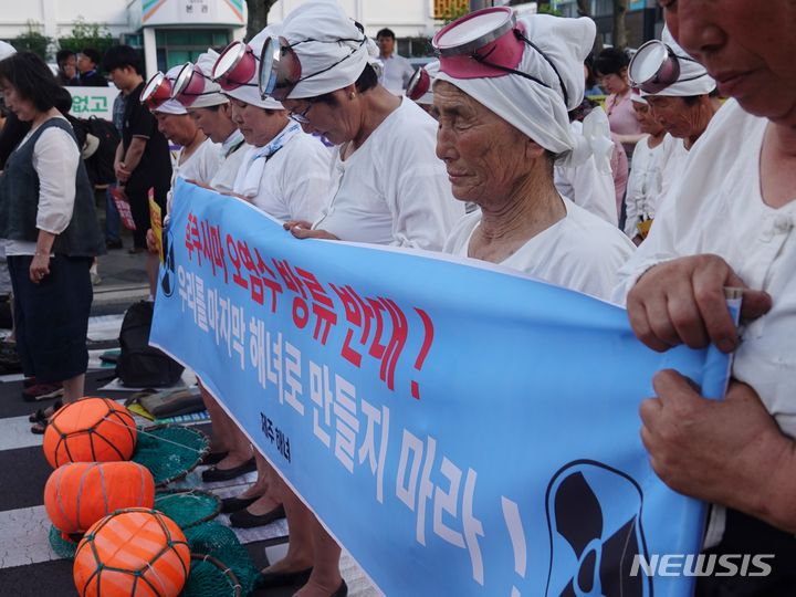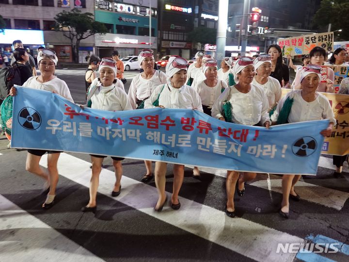 「原発汚染水の海洋放出反対」 行進する済州の海女たち
