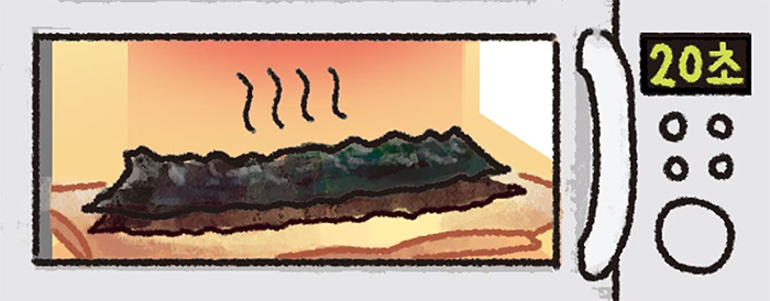 しけった「ノリ」は電子レンジに入れ、10-20秒ほど加熱すればまたパリパリになる。キッチンタオルを敷いてその上にノリを載せれば、いっそう効果的だ。