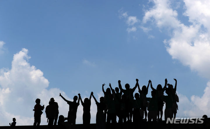 梅雨が止んだ19日午後、ソウル市竜山区の国立中央博物館から眺めた青空の様子。