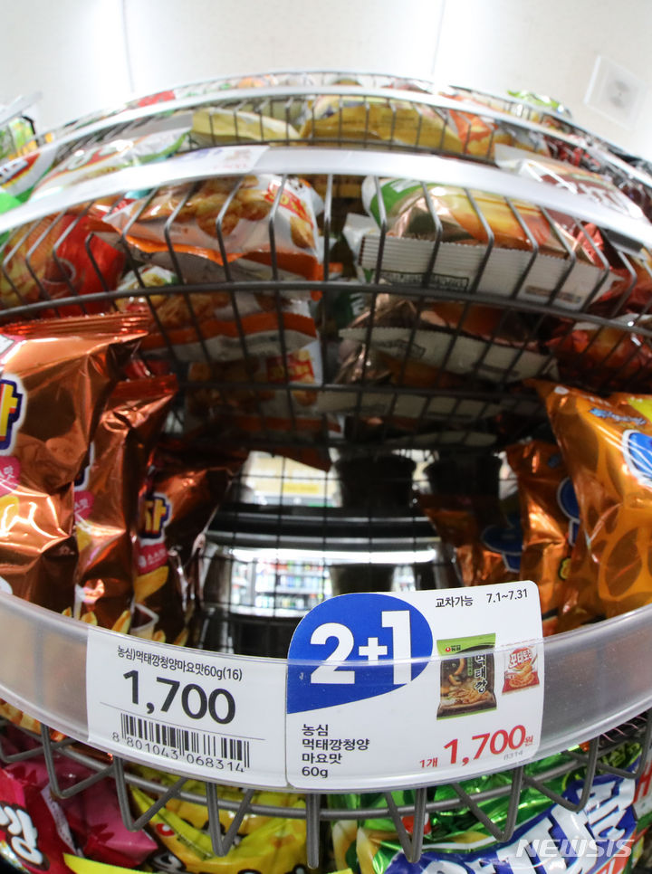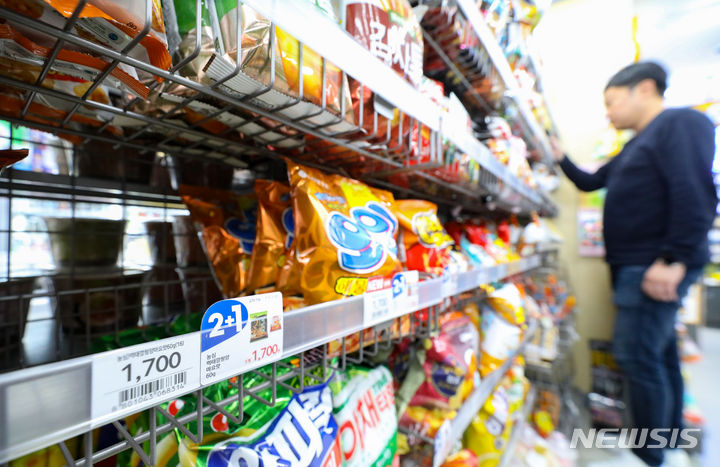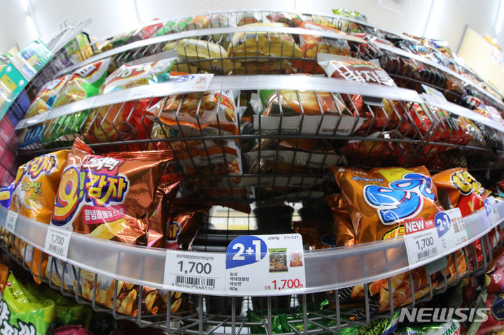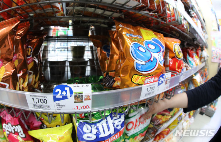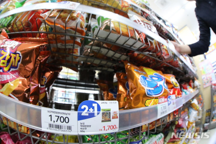 19日午後、ソウル市内のコンビニのお菓子コーナーで、「モクテカン」が売り切れになっている様子。発売からわずか3週間で172万袋が売れた「モクテカン」を数量限定で販売中の「農心モール」のメンバー数は前年末比で400%も増加し、あるオンラインショッピングモールで進められた「モクテカン」販売イベントでは230箱がわずか44秒で売り切れるなど、韓国では「モクテカン」ブームが起きている。