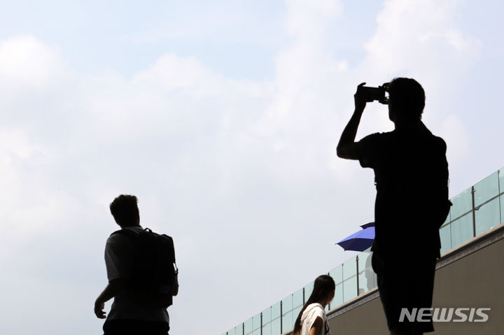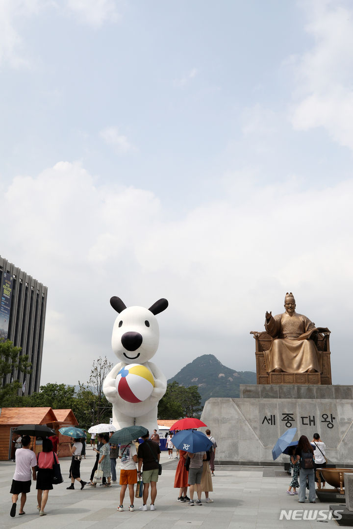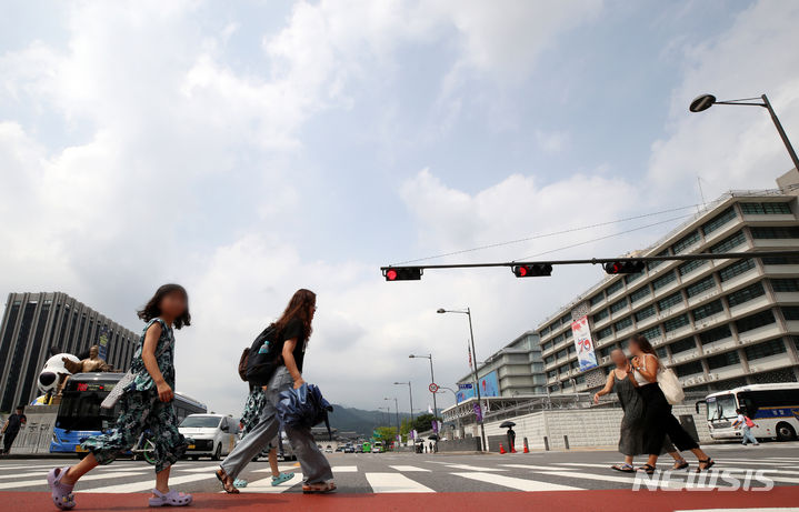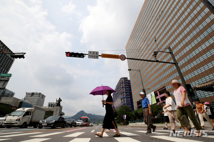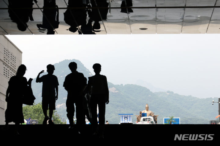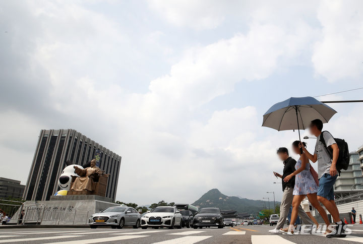 ソウル地域で梅雨が小康状態となった24日午後、ソウル市鍾路区の光化門広場付近から見た晴天の様子。