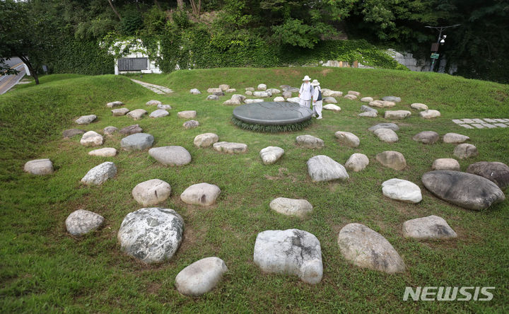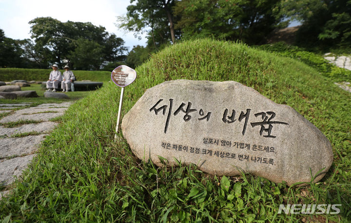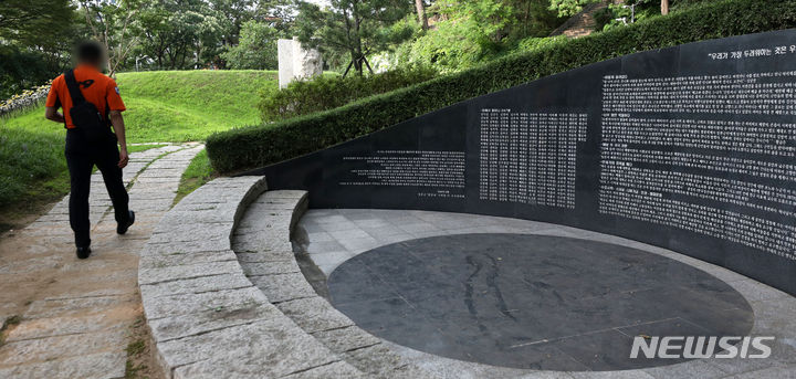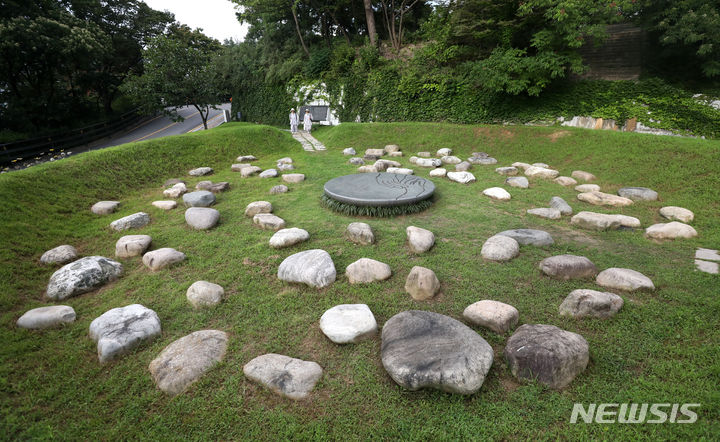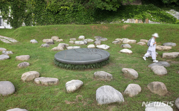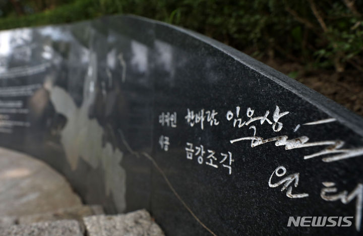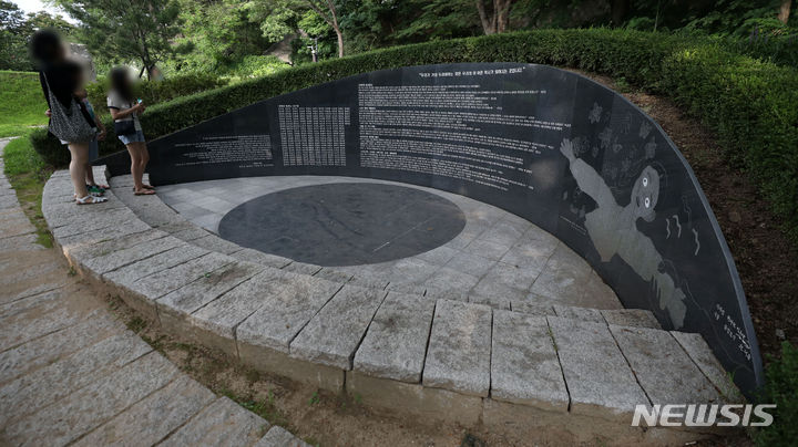 【NEWSIS】ソウル市では、市立施設内に設置され、管理している画家・林玉相(イム・オクサン)被告の作品について、一審判決後に撤去すると明らかにした。林玉相被告は2013年に自身の美術研究所スタッフに対し強制わいせつ行為に及んだとして起訴された。ソウル市は社会的に物議を醸したアーティストの作品を維持・保存することは公共美術の趣旨に合致しないと判断した。写真は30日、ソウル・南山のふもとにある日本軍従軍慰安婦「記憶の場」追悼公園に設置された、同被告の手によるモニュメント「大地の目」と「世の中のへそ」。