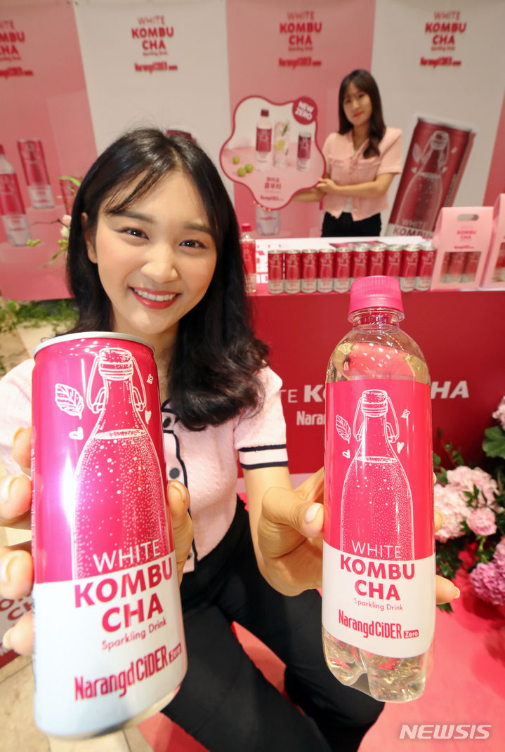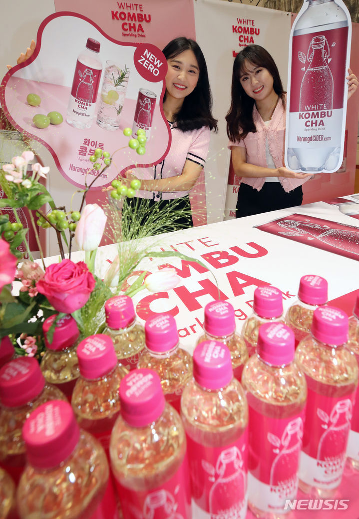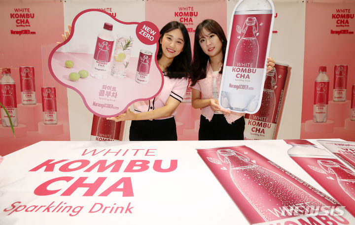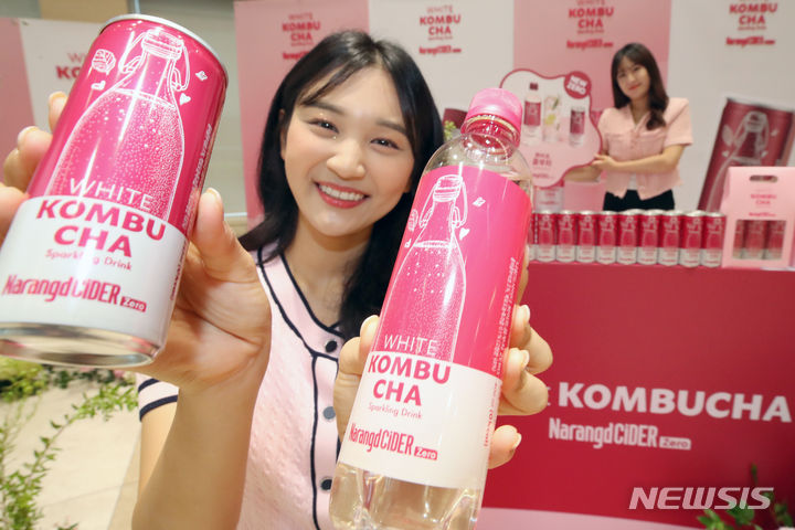 【NEWSIS】10日午前、ソウル市東大門区の飲料メーカー「東亜大塚」ソウル事務所で、ナランドサイダーの新しいフレーバー「ホワイト・コンブチャ」のPRイベントが行われた。