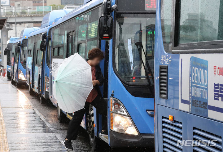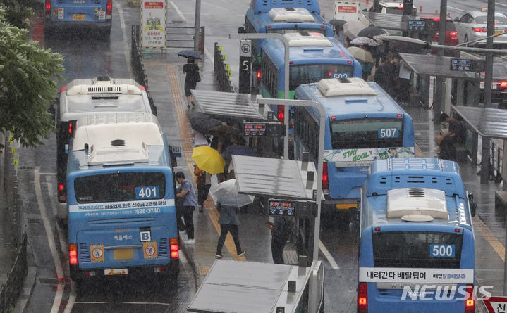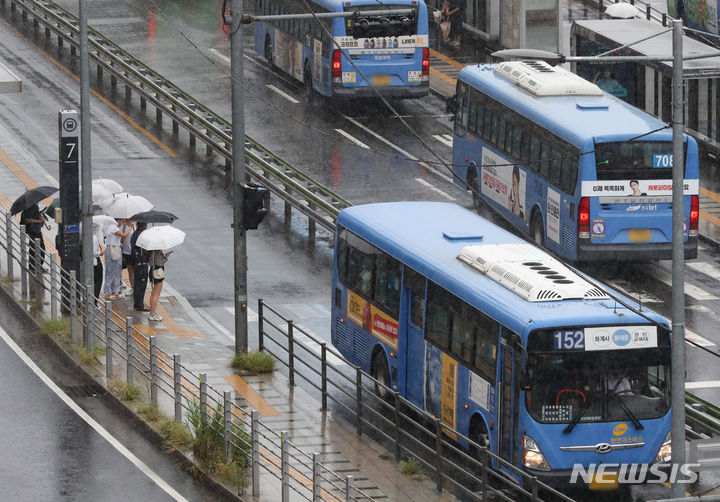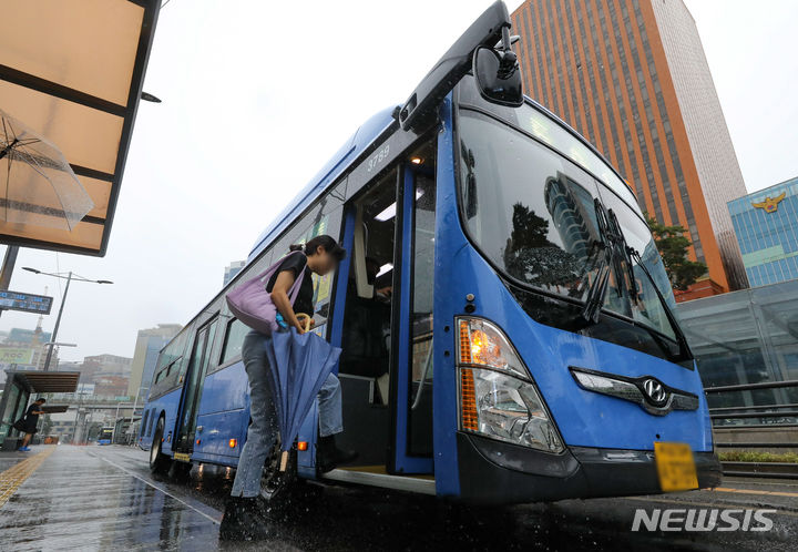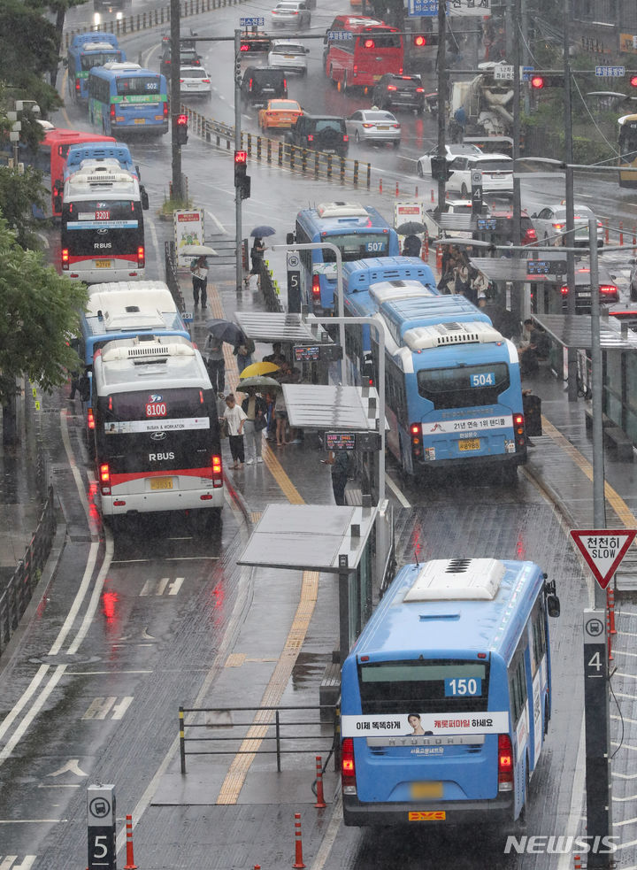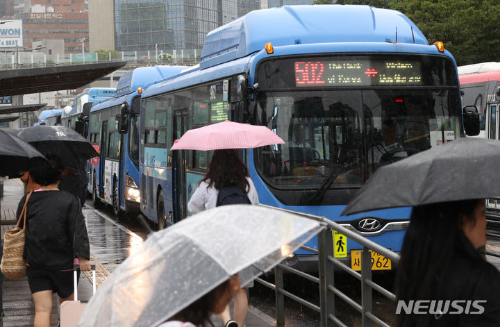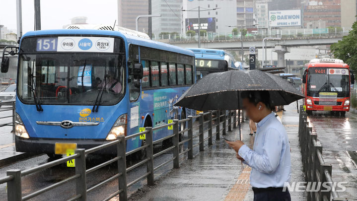 ソウルの市内バスとマウルバスの基本運賃が今月12日から300ウォン(現在のレートで約33円。以下同じ)引き上げられる。バスの基本運賃は、カード基準で幹線・支線バスは1200ウォン(約131円)から1500ウォン(約164円)に、循環・差等バスは1100ウォン(約120円)から1400ウォン(約153円)に上がる。マウルバスも900ウォン(約98円)から1200ウォンに引き上げられる。広域バスは2300ウォン(約252円)から3000ウォン(約328円)に、深夜は2150ウォン(約235円)から2500ウォン(約273円)にそれぞれ調整される。写真は10日午後、ソウル市中区のソウル駅付近で運行中の市内バス。