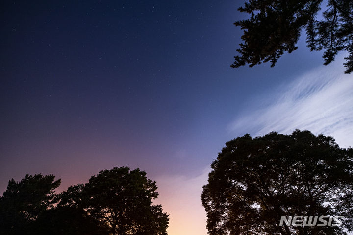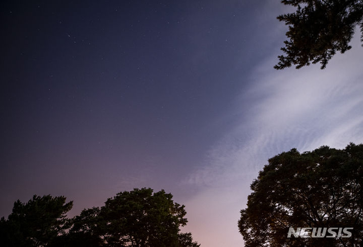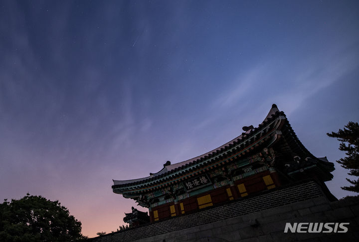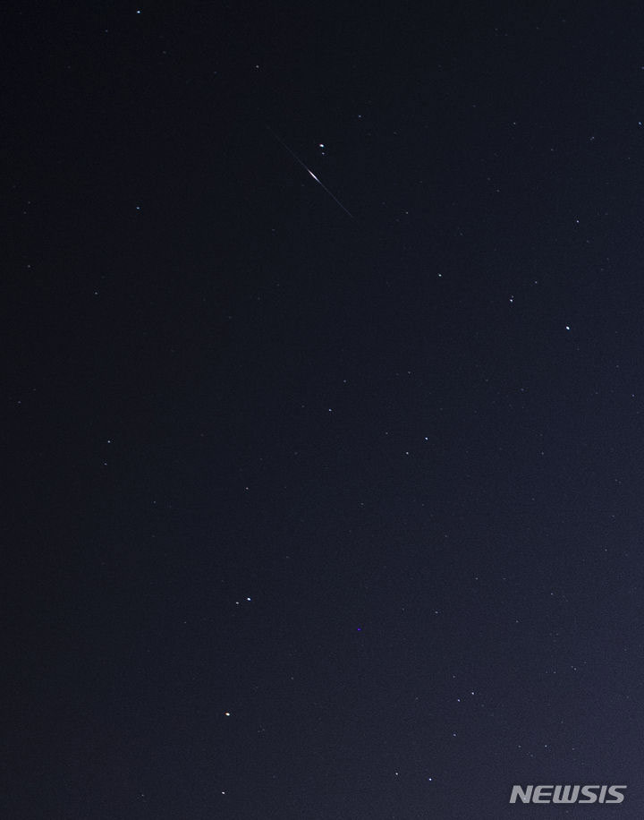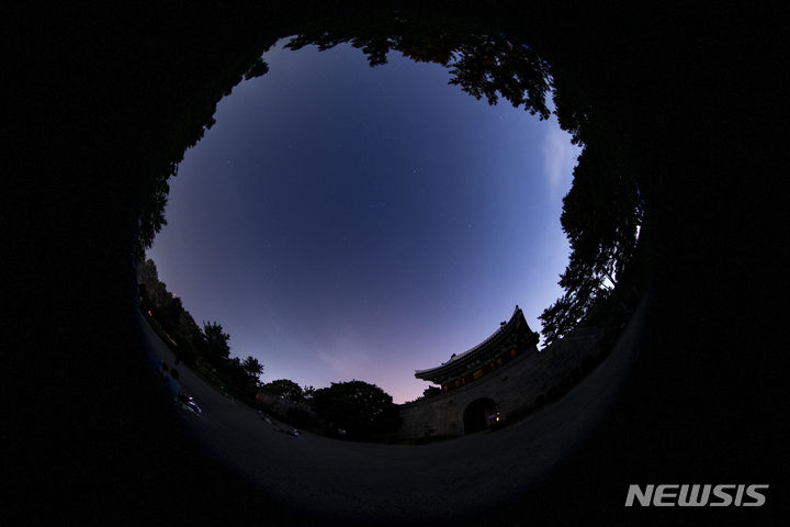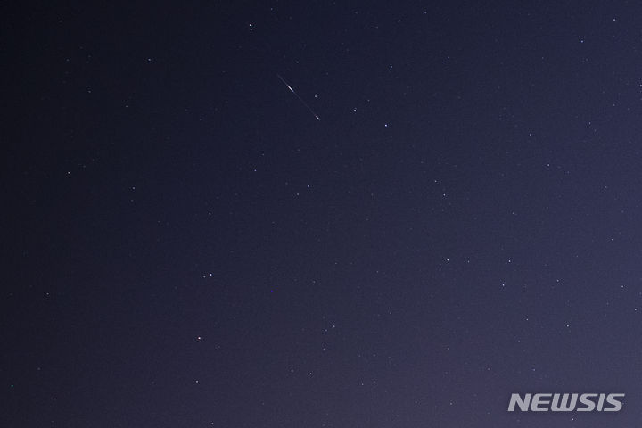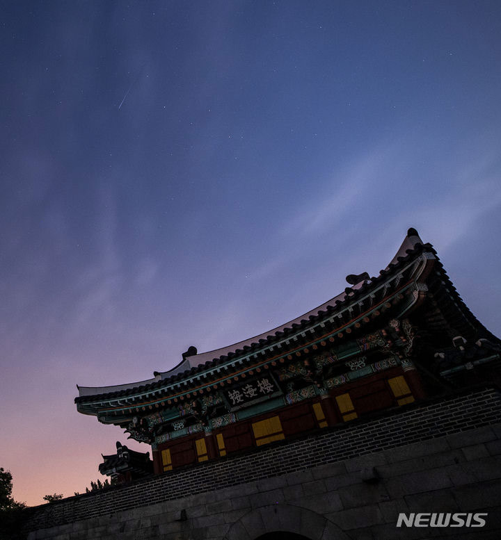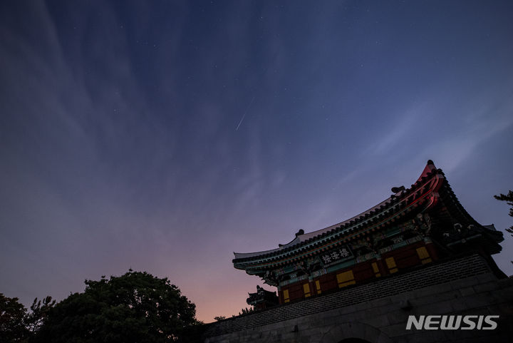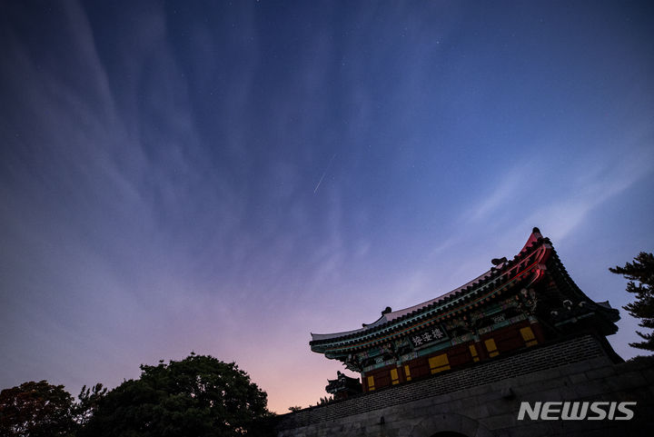 【NEWSIS】14日未明、仁川市江華郡にある高麗時代の要塞(ようさい)「広城堡」から見たペルセウス座流星群。