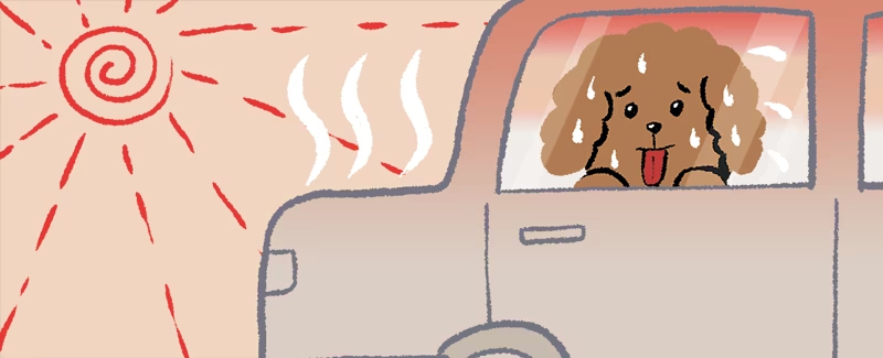 夏に車の中に子どもやペットを放置してはいけない。日中の車内温度はしばらくすると80℃以上になる危険性がある。