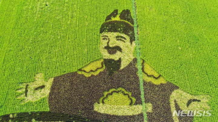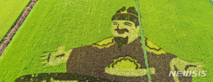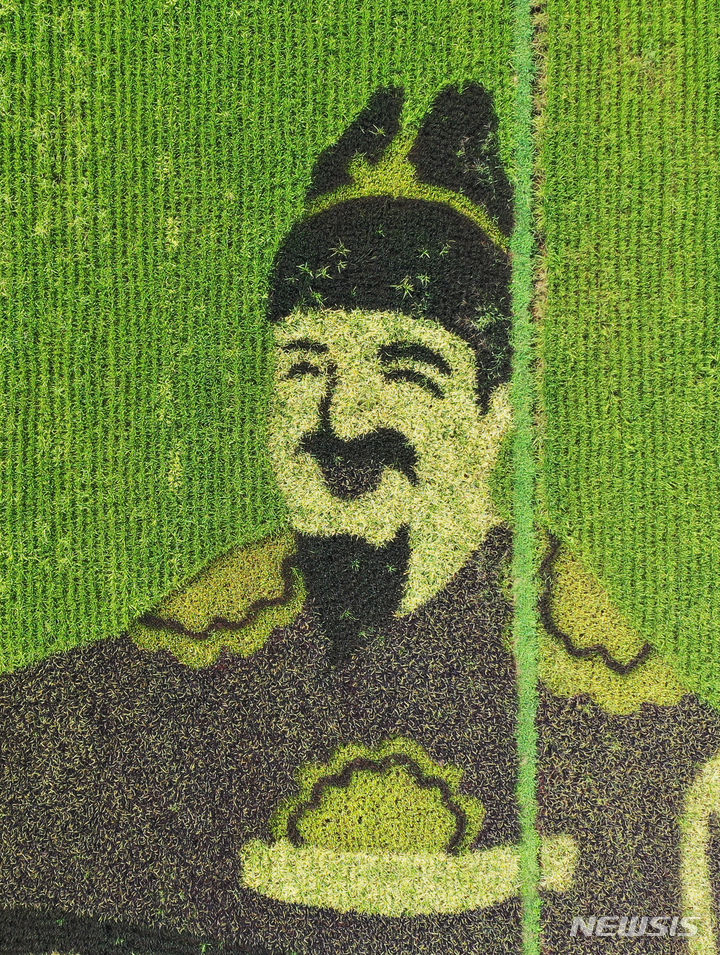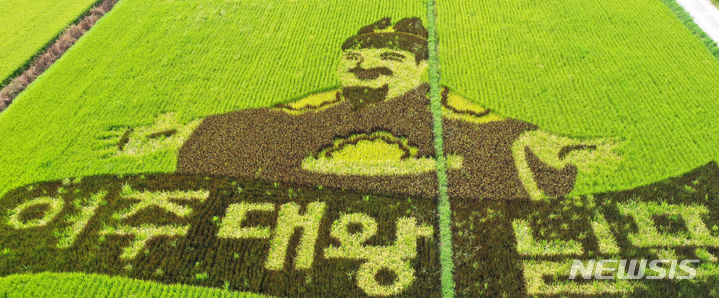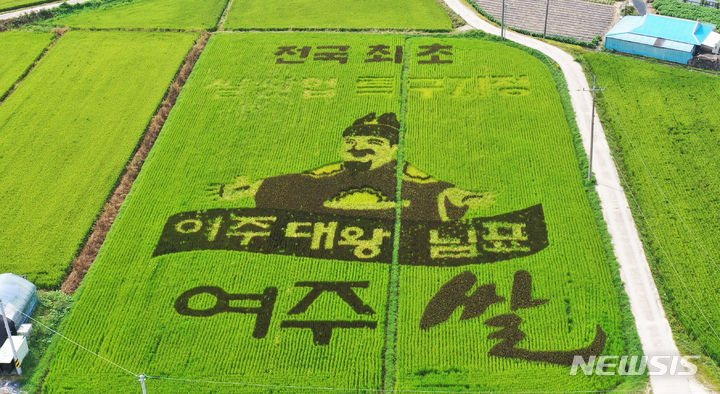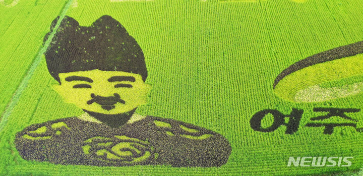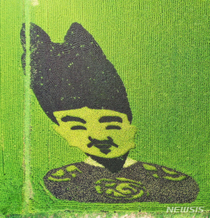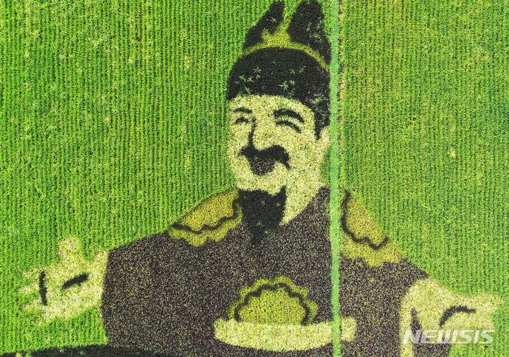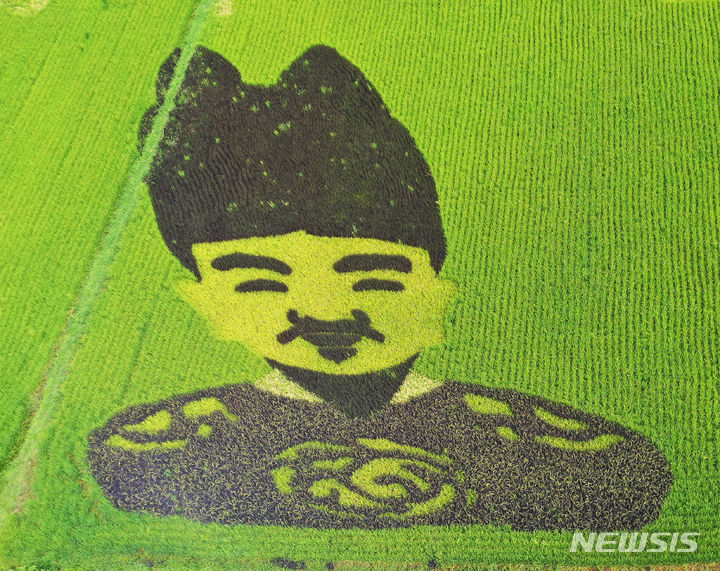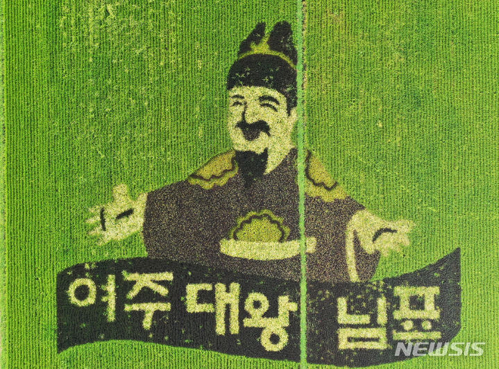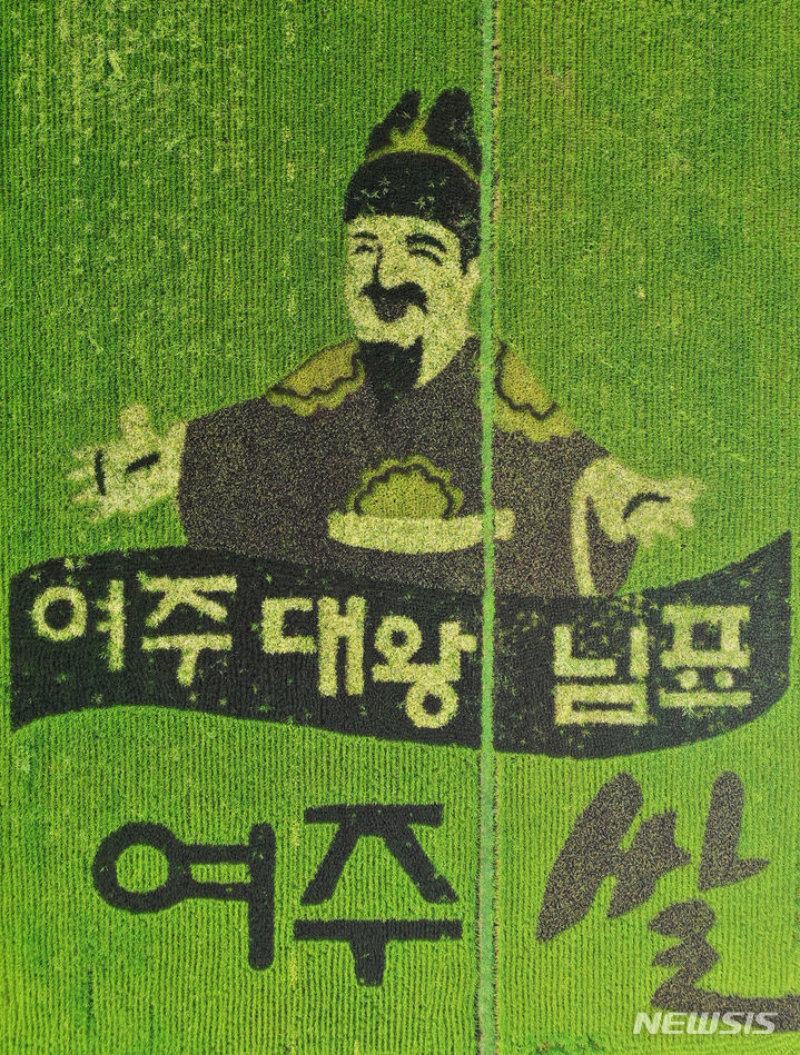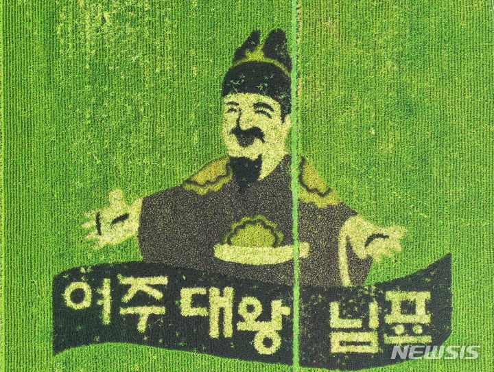 「コメの日」を翌日に控えた17日、京畿道驪州市陵西面の世宗大王駅近くの田んぼには、驪州米の代表品種である「進上稲」と有色稲を活用した世宗大王の「田んぼアート」が描かれ、注目を集めていた。