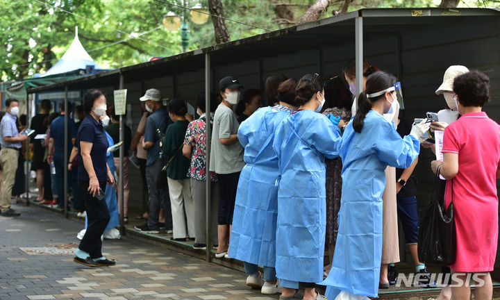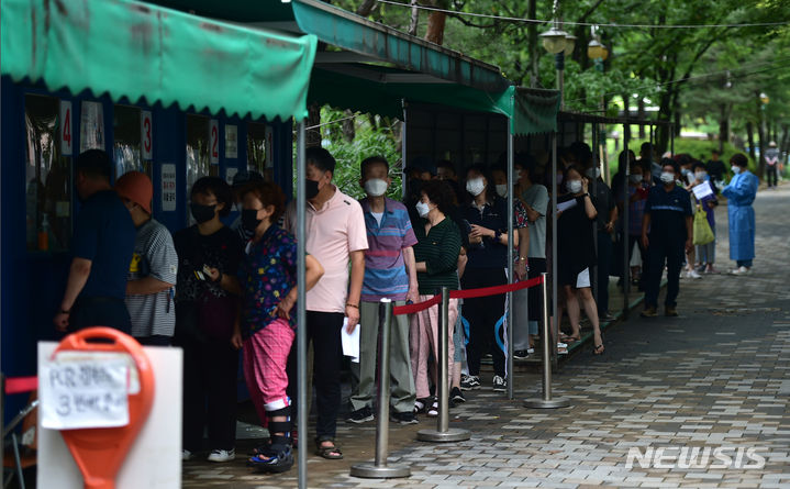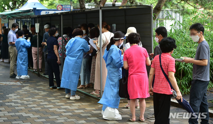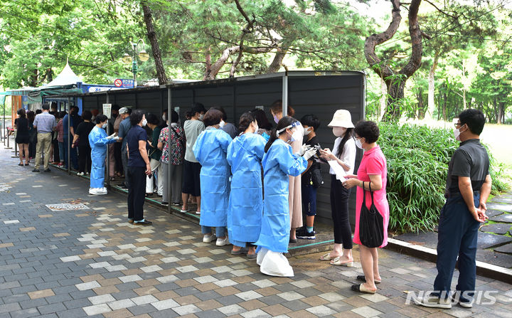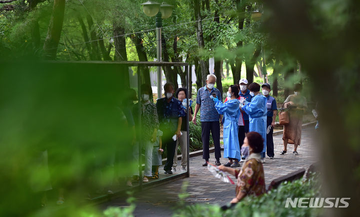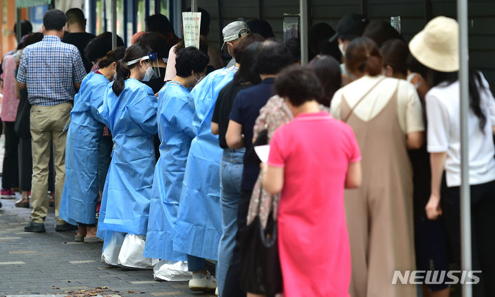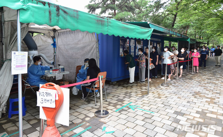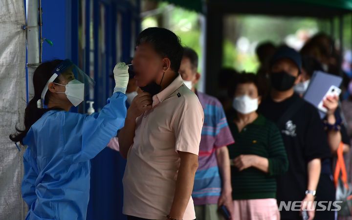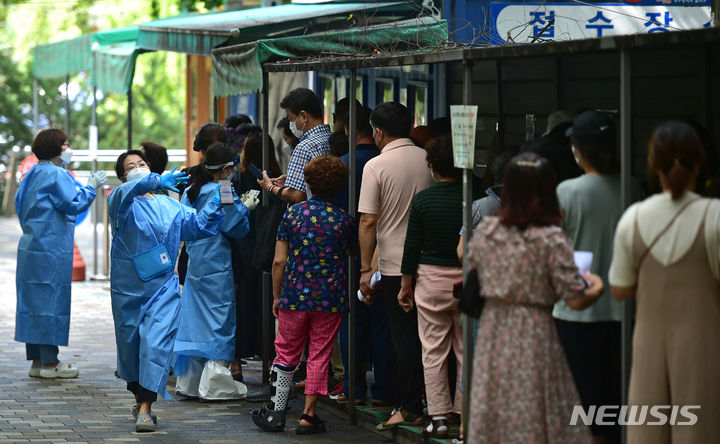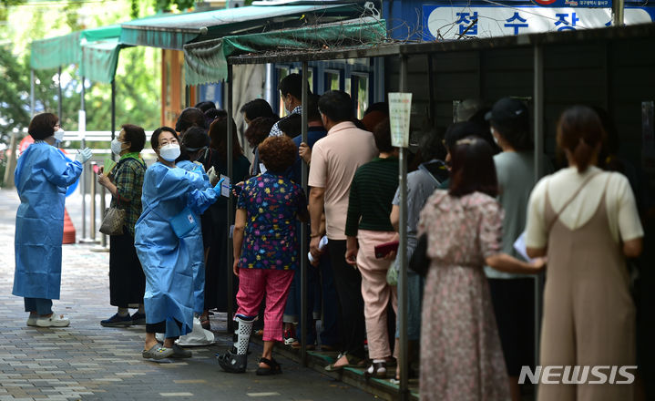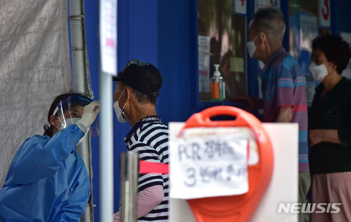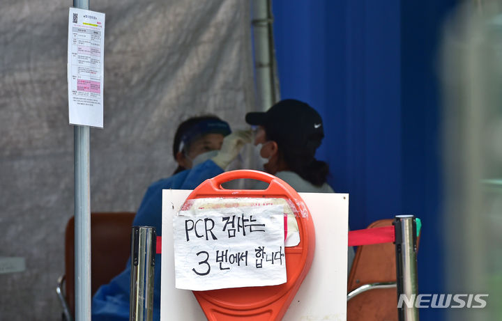 新型コロナウイルスの新たな変異株が出現し、防疫当局が神経をとがらせている中、大邱市達西区保健所の選別診療所では21日午前、市民たちが検査を受けるために順番を待っていた。
