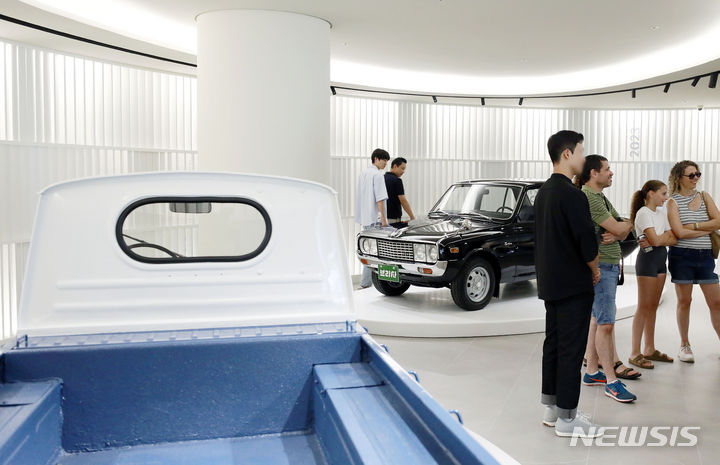ソウル市江南区の起亜360で21日、「ブリザ」の復元車が展示されている様子。起亜ヘリテージ展示は特に予約することなく観覧が可能で、ドーセントツアーは現場での受付を通して申請できる。