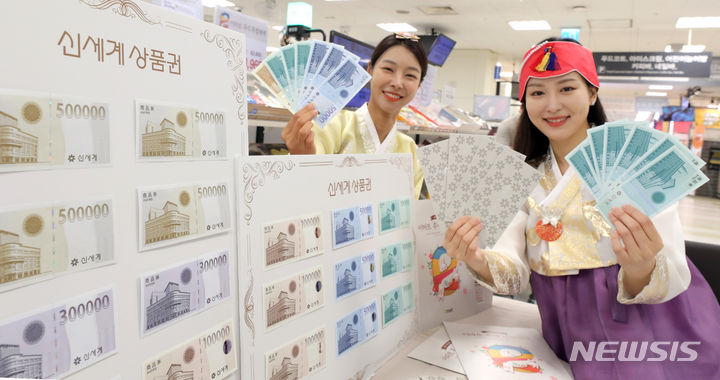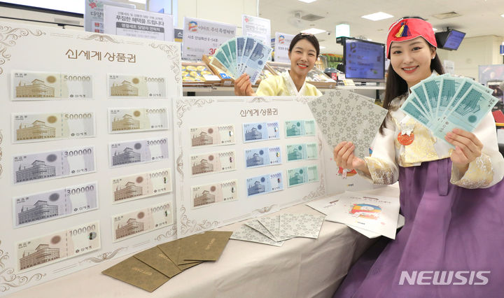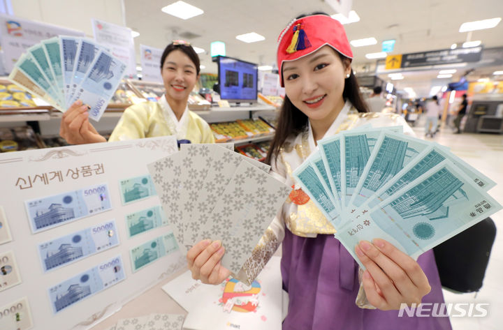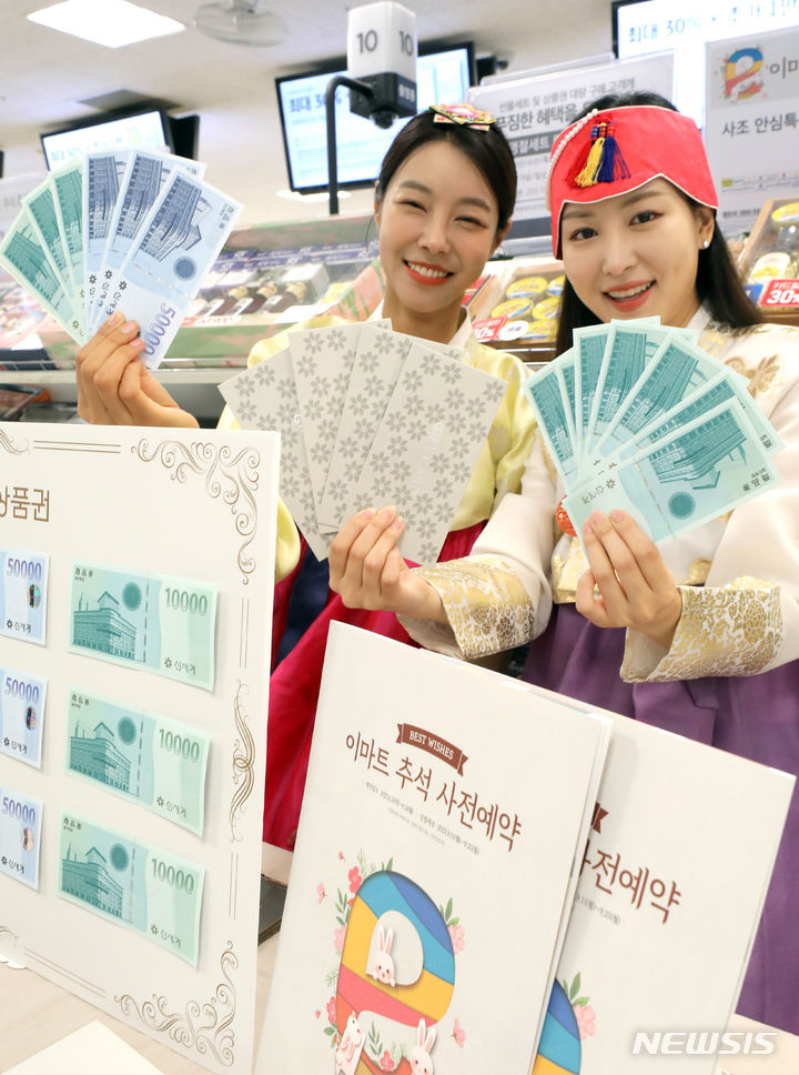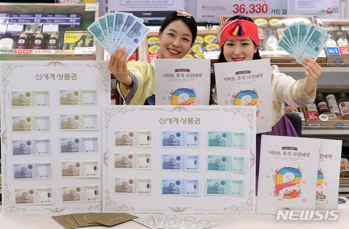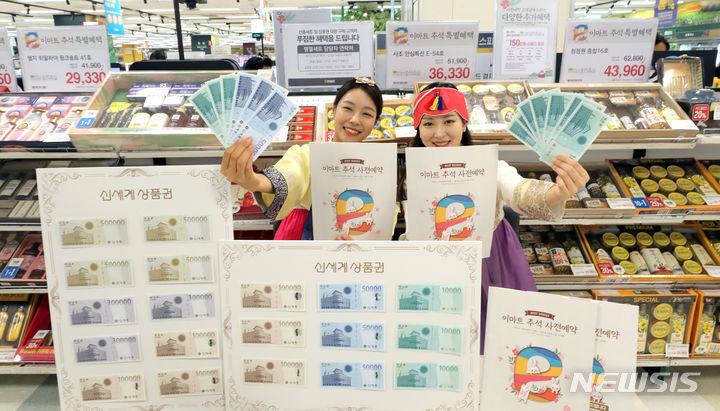 秋夕(中秋節。今年は9月29日)の名節まであと1カ月と迫った29日午前、ソウル市竜山区の大手スーパー「Eマート竜山店」で、新世界商品券のPRイベントが開かれた。