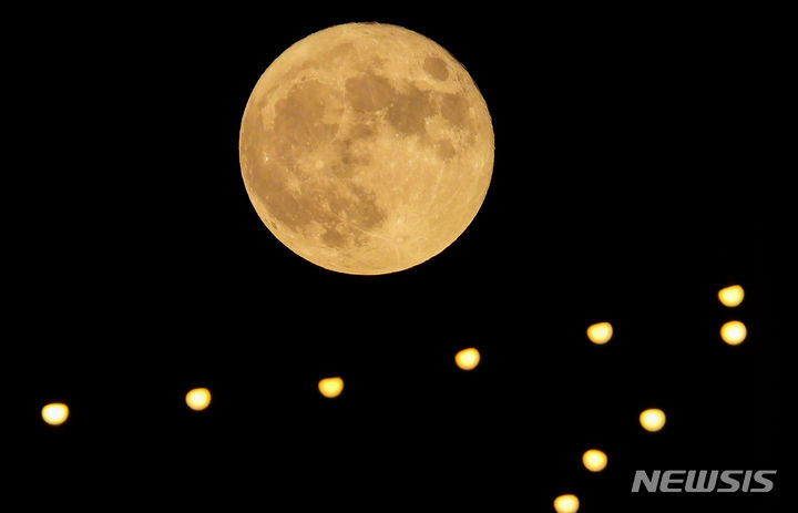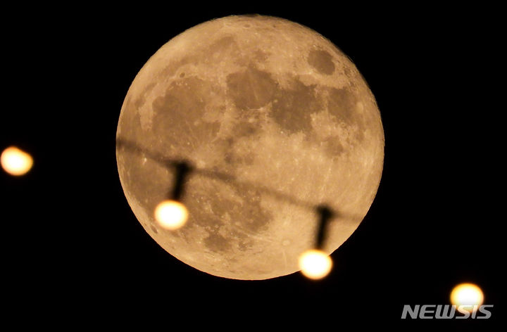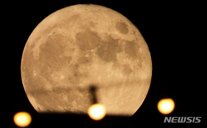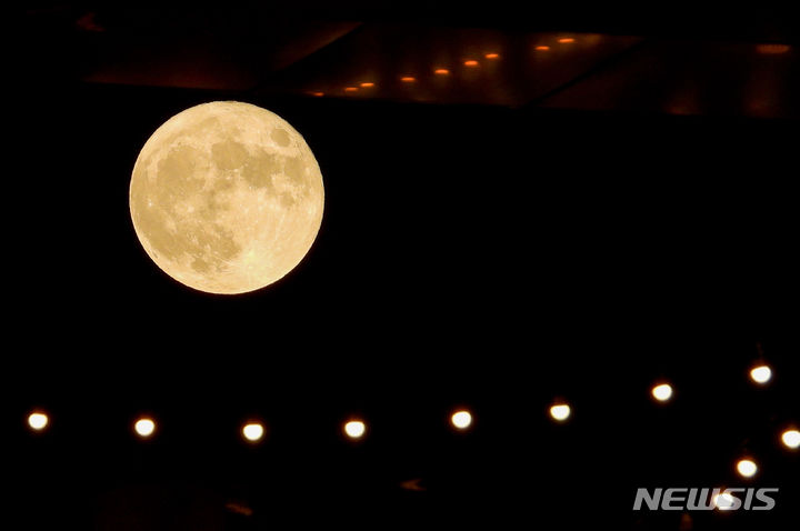 【NEWSIS】8月31日夜、済州市の東の上空に今年最大の満月「スーパーブルームーン」が浮かんだ。スーパーブルームーンとは、1年で月が最も地球に接近し、ふだんより明るく輝いて見える「スーパームーン」と、ひと月に2回目の満月となる「ブルームーン」が重なることだ。