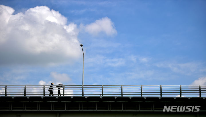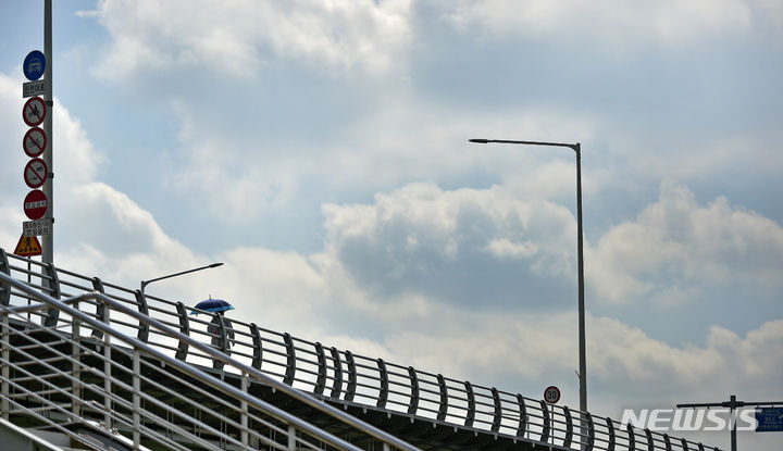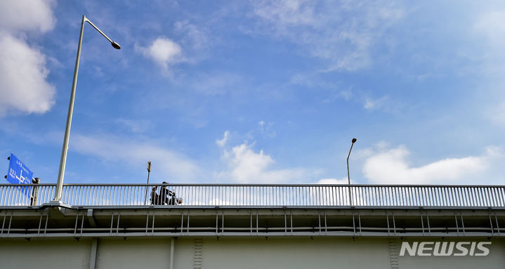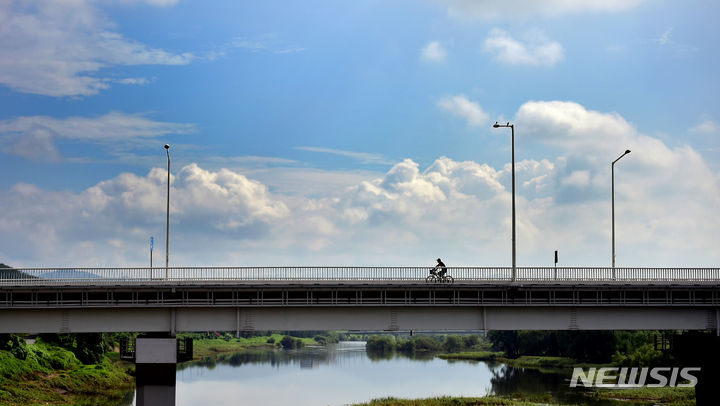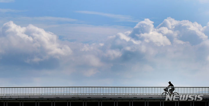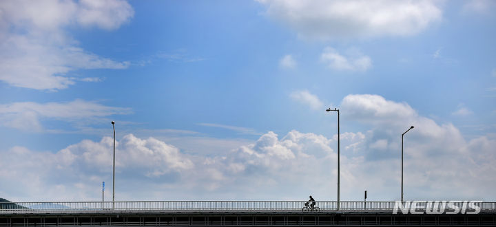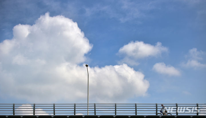 【NEWSIS】3日、大邱市北区にある琴湖江の河中島から見た空はすっきりと晴れて、秋を思わせる青空に白い雲が広がっていた。