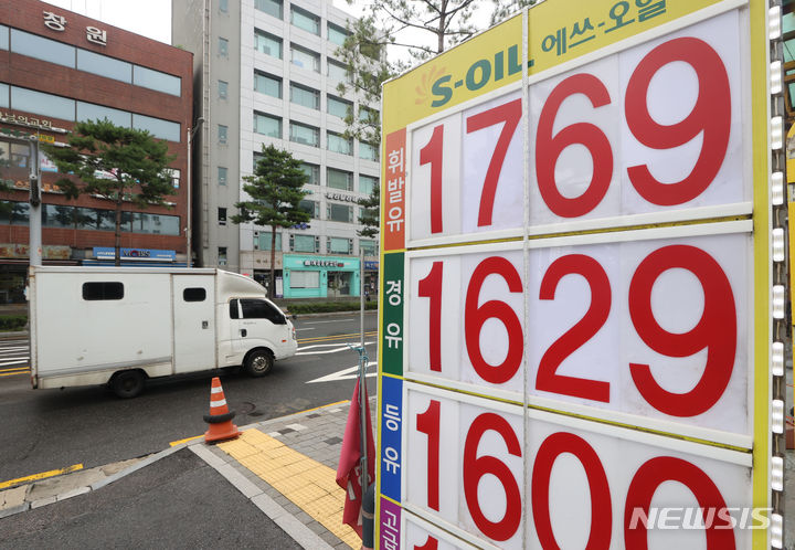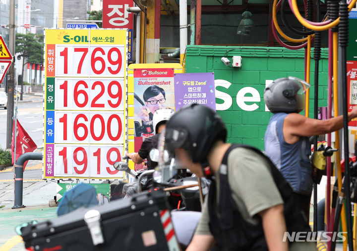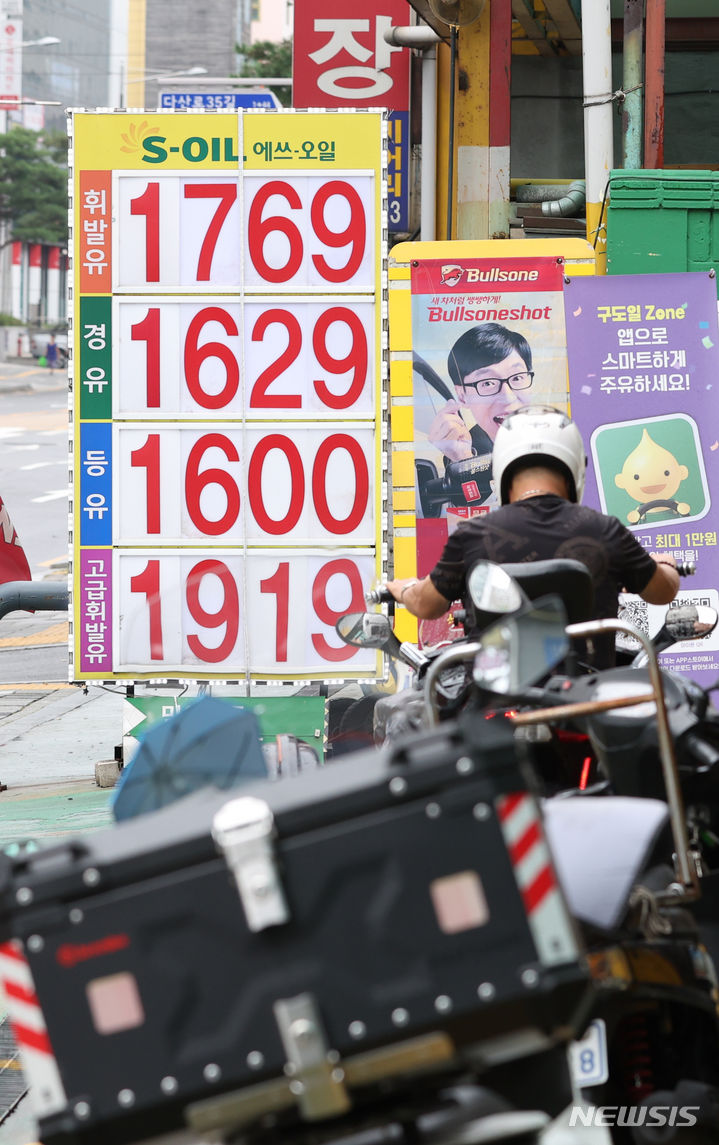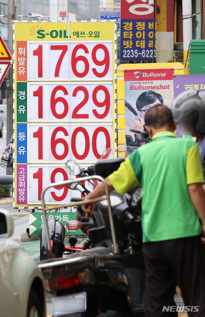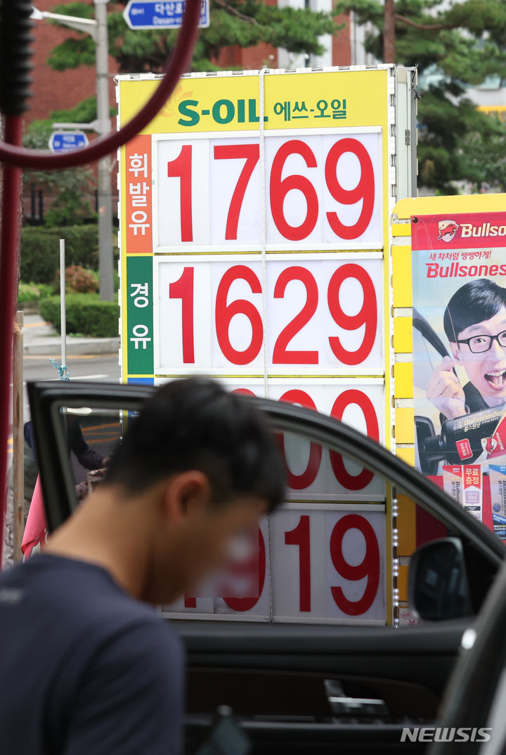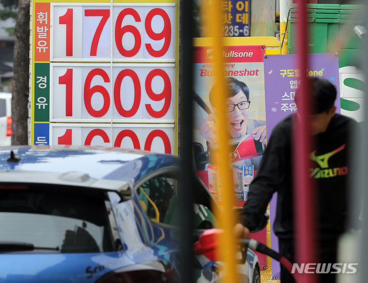 【NEWSIS】最近、国際原油価格が上がっていることから、韓国国内のガソリン価格も2カ月連続で上昇傾向にある。写真は3日、ソウル市内のあるガソリンスタンドに掲示されたガソリン、軽油、灯油、ハイオクの価格。