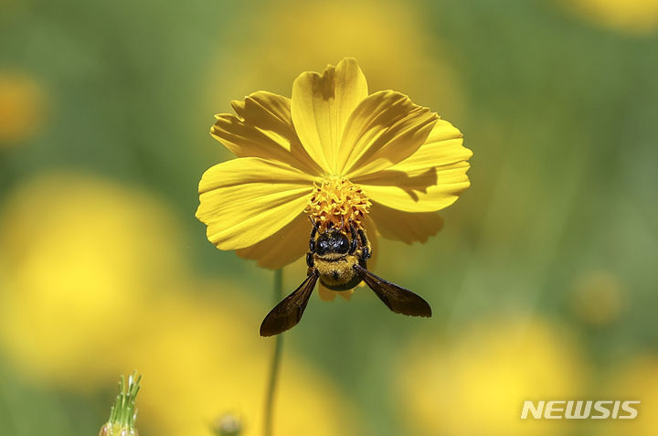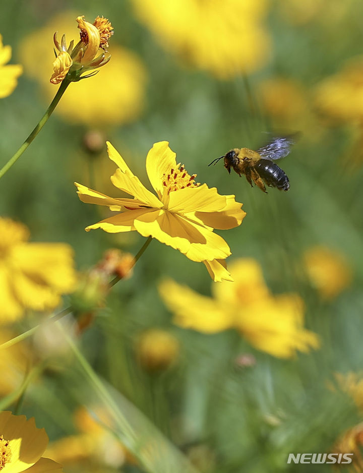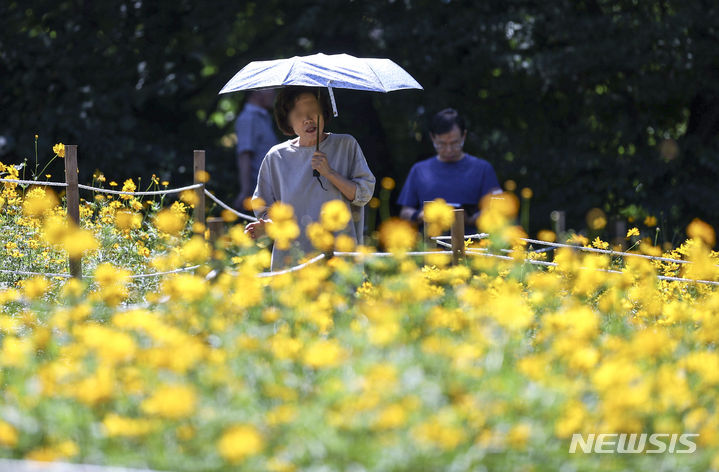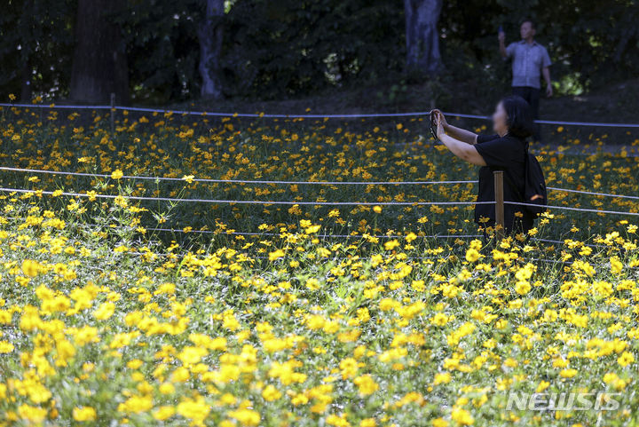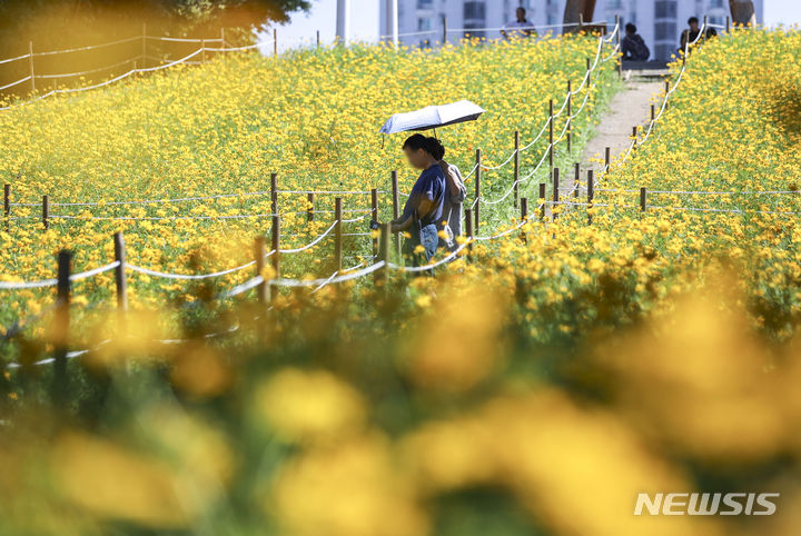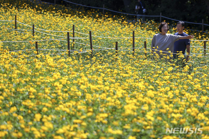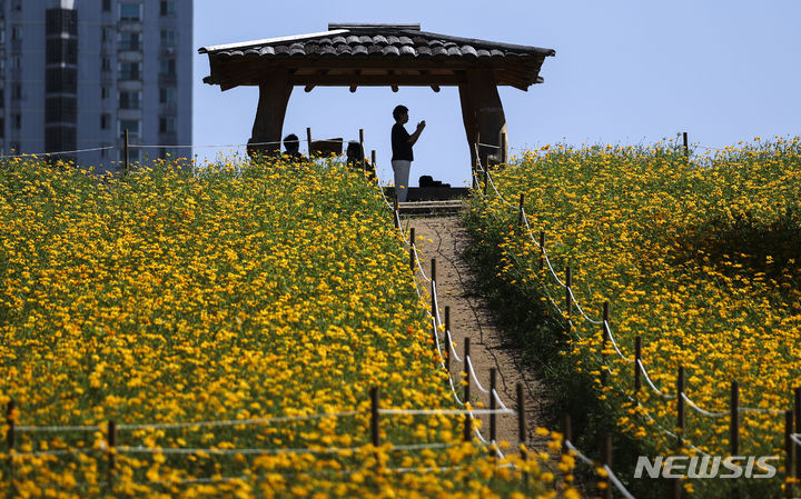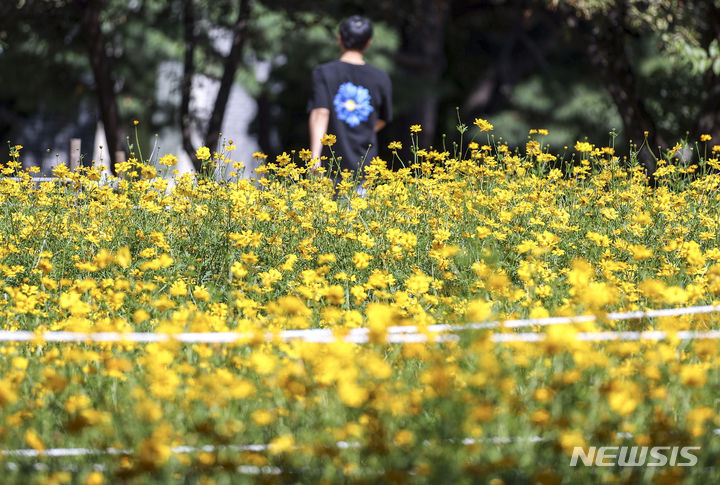 7日、オリンピック公園(ソウル市松坡区)の「トゥルコッマル」では、黄色いコスモスがいっぱいに花開いていた。