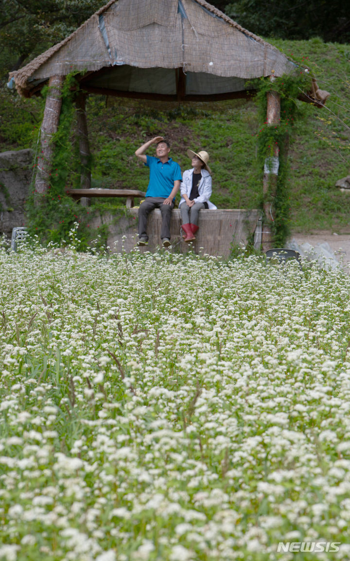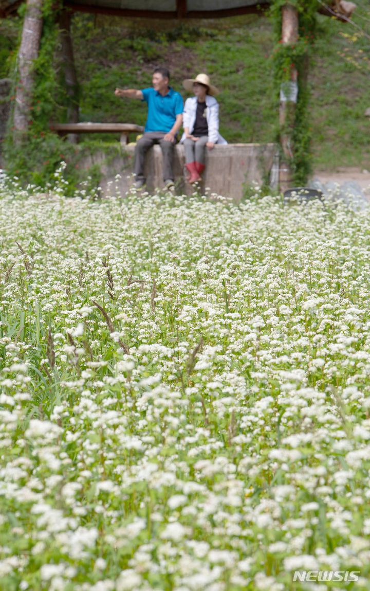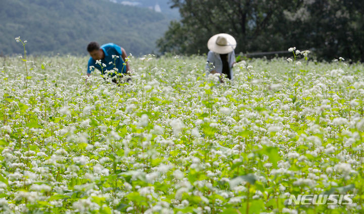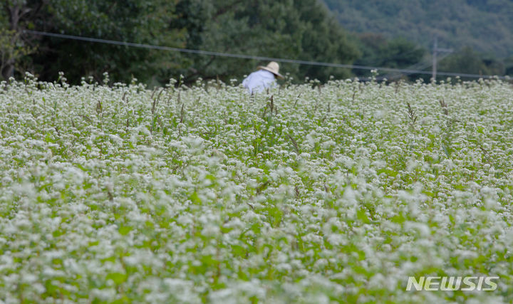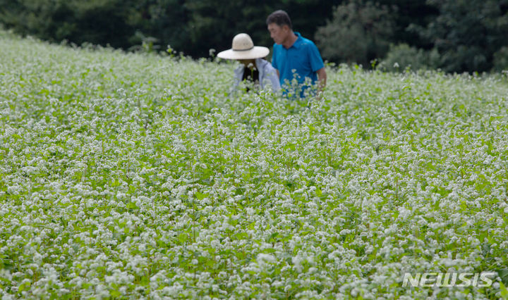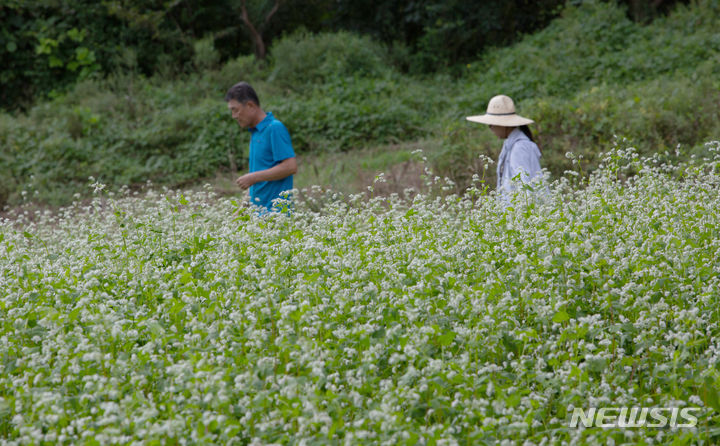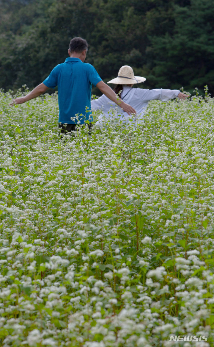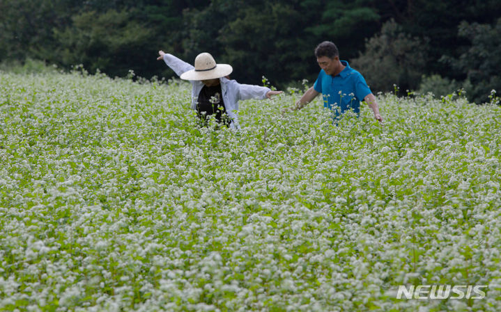 11日、蔚山市蔚州郡上北面の郊外で咲き乱れるソバの花の様子。
