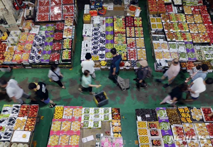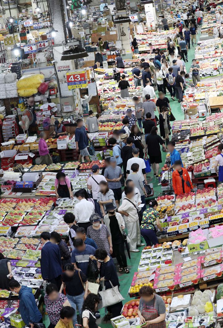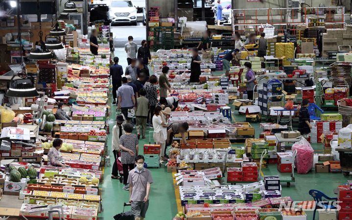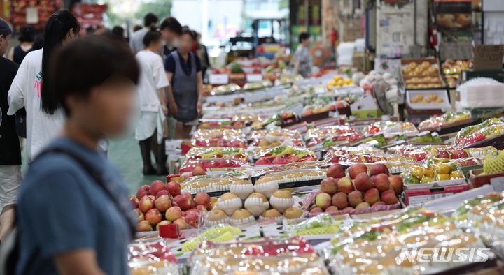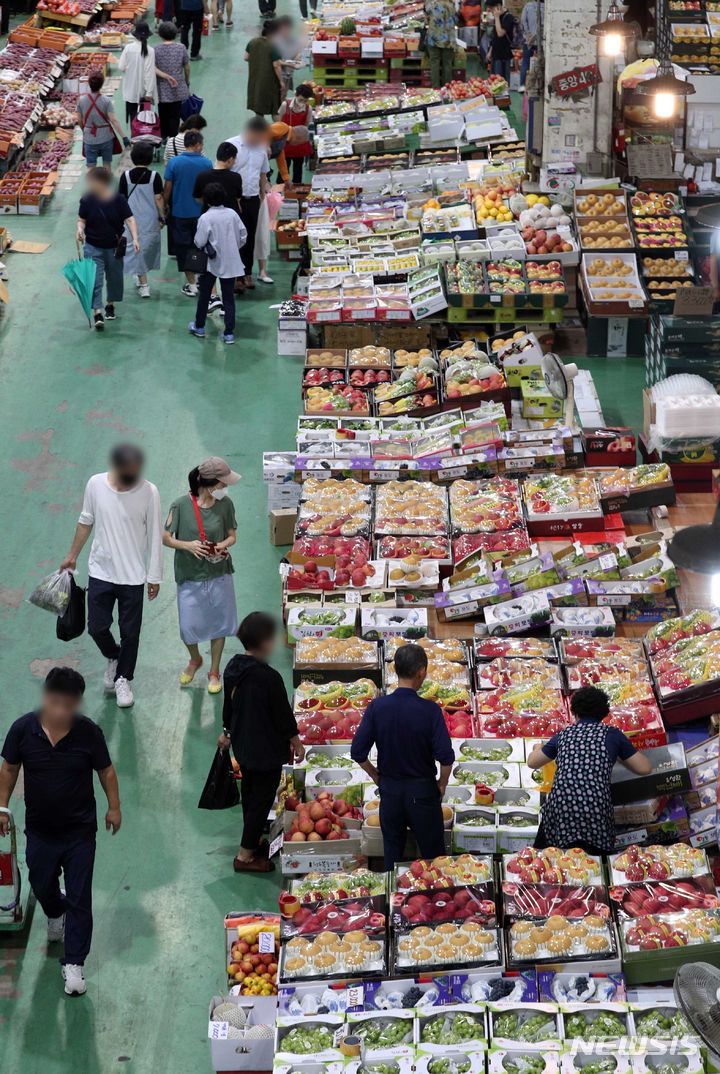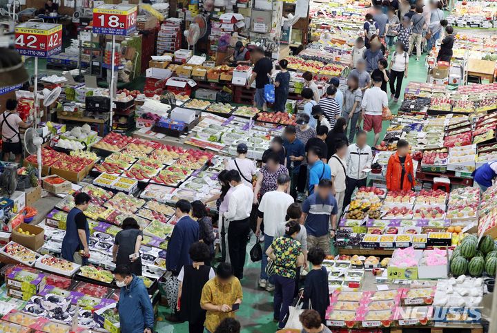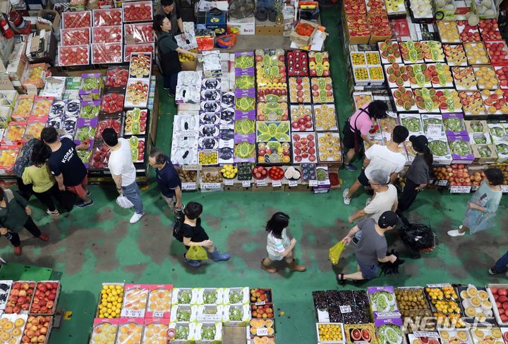 【NEWSIS】秋夕(チュソク=中秋節)連休(今年は9月28-30日)まであと約十日となった16日、釜山市海雲台区の盤如農産物卸売市場は祭祀(さいし)用や贈答品用の果物を買い求める市民たちでにぎわっていた。