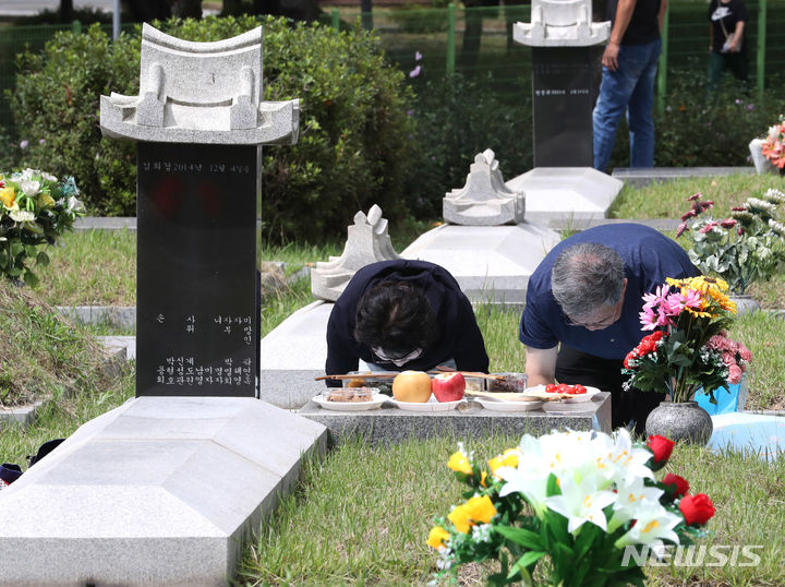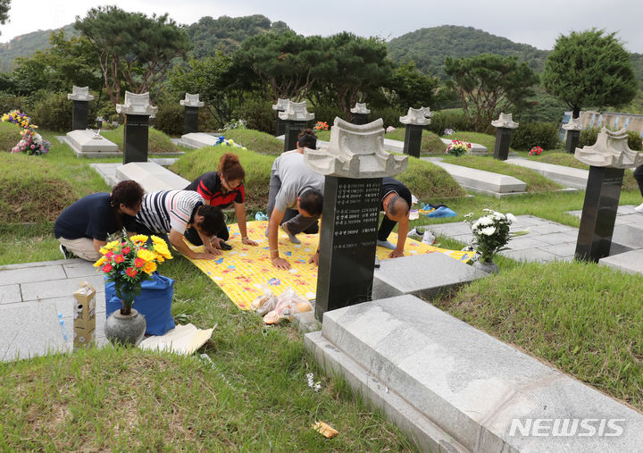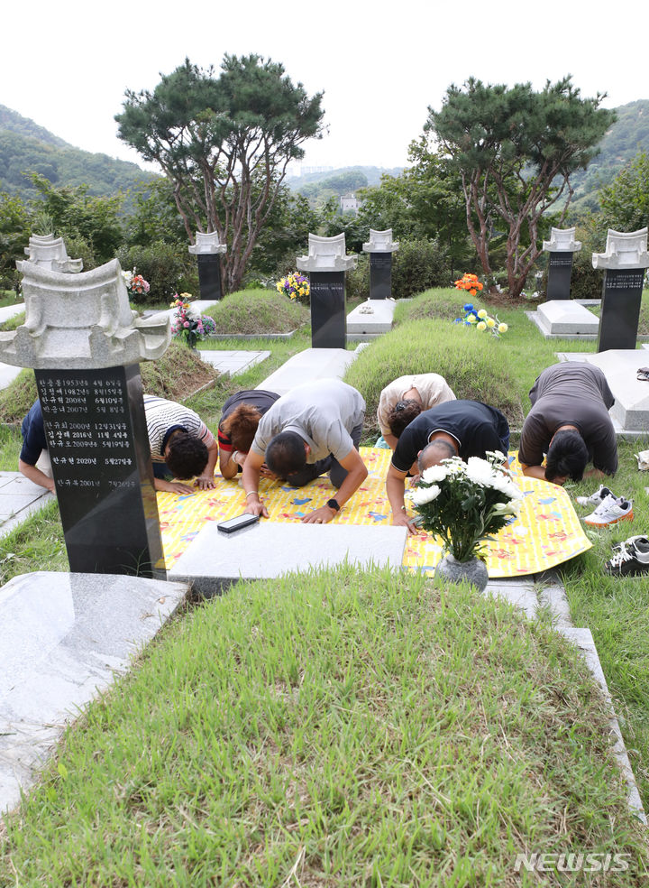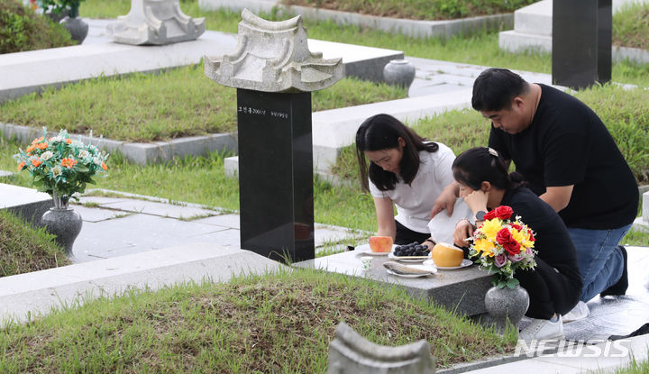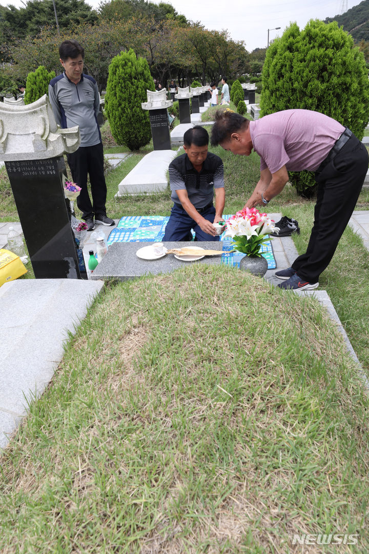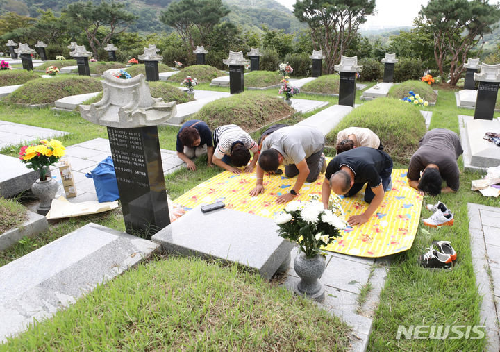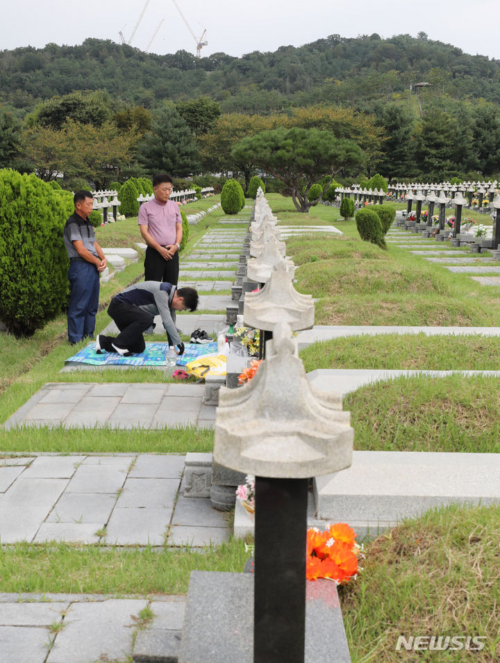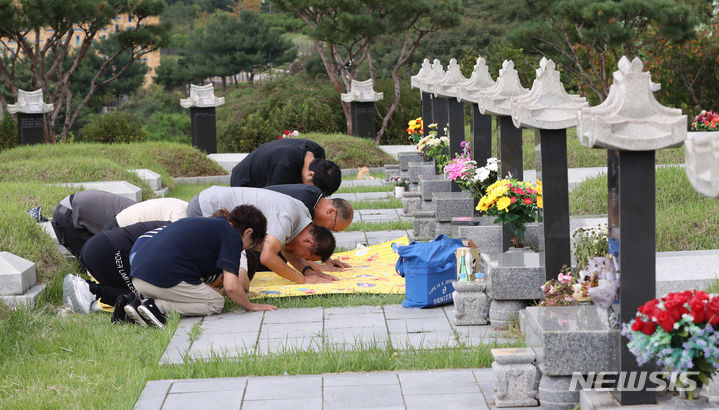 【NEWSIS】秋夕(チュソク=中秋節)連休(今年は9月28-30日)まであと約十日となった17日、仁川市富平区の公園墓地「仁川家族公園」を訪れた墓参客。