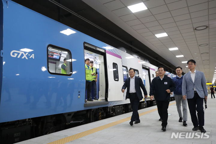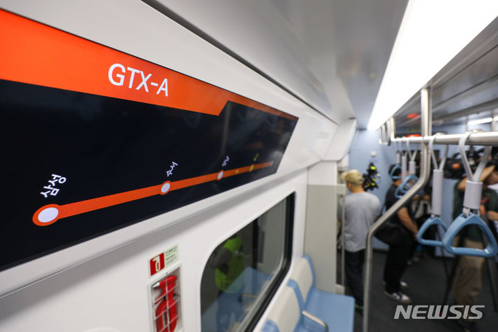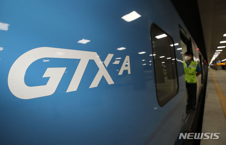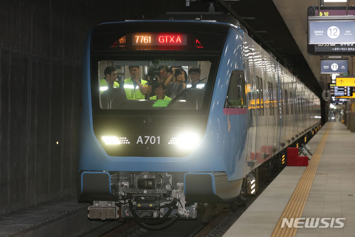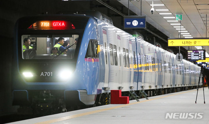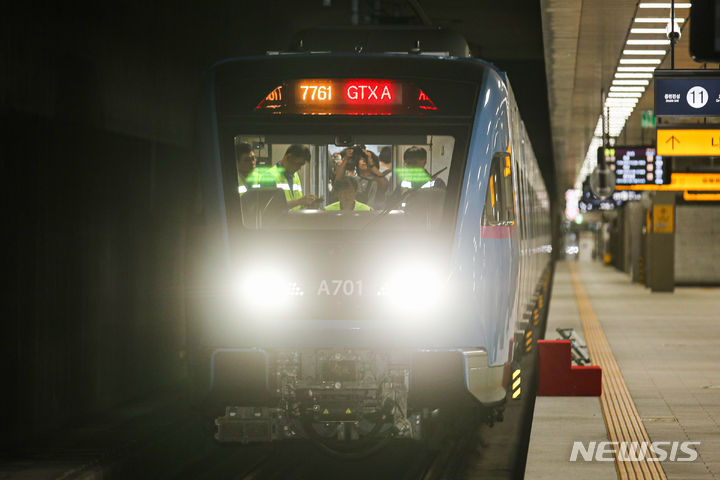 21日午前、GTX-A鉄道車両が、ソウル市江南区の水西駅SRT乗り場から京畿道華城市の東灘駅まで試運転される様子。