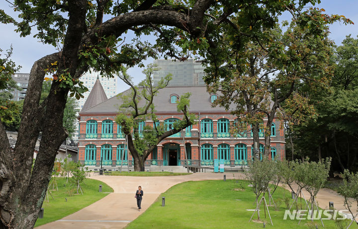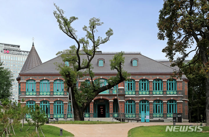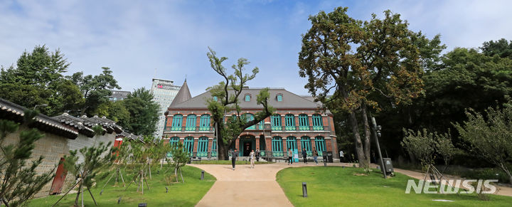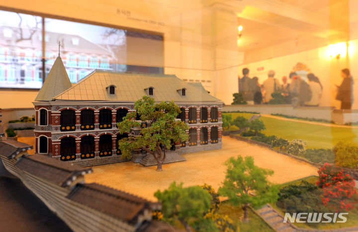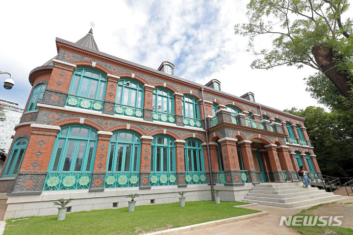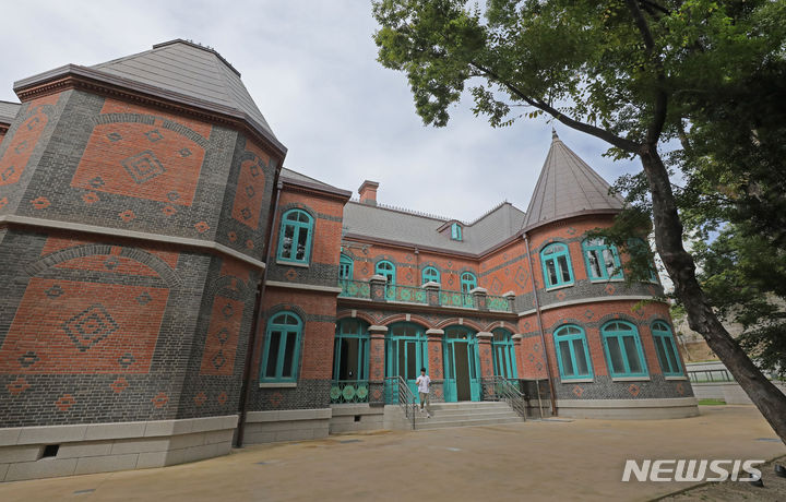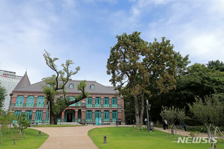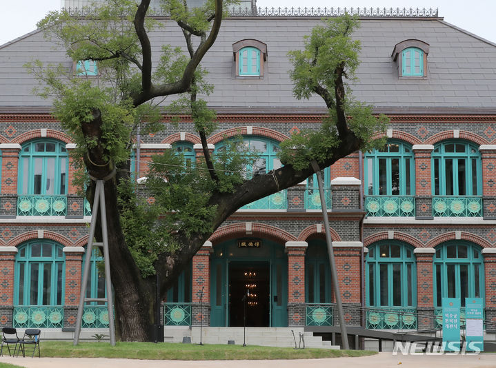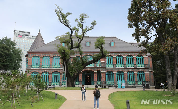 100年前に大韓帝国の外交の中心の場だった徳寿宮惇徳殿(ソウル市中区)の復元が終わり、25日にメディアに公開された。写真はこの日午前、徳寿宮惇徳殿の正面の様子。徳寿宮惇徳殿は、高宗即位40周年を祝う式典に合わせて建てられた西洋式の迎賓館で、1921年から1926年にかけて取り壊された歴史がある。