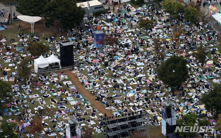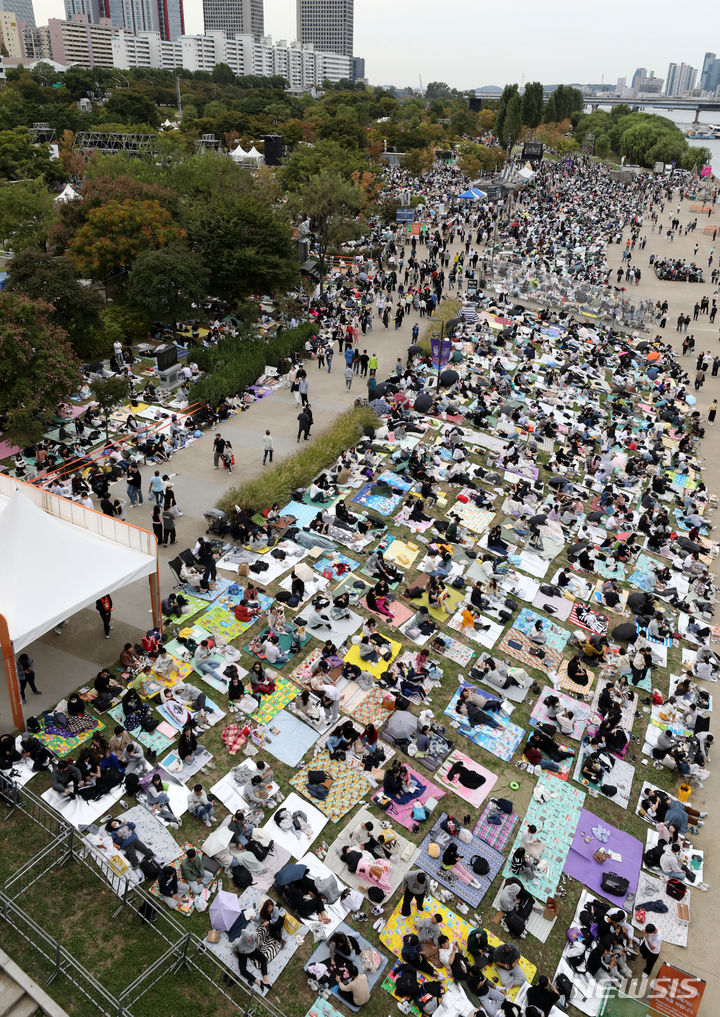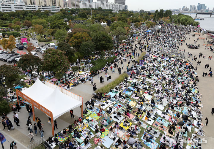 7日午後、ソウル市永登浦区の汝矣島漢江公園一帯は「ハンファと共にあるソウル世界花火祭り」を訪れた人で混雑していた。