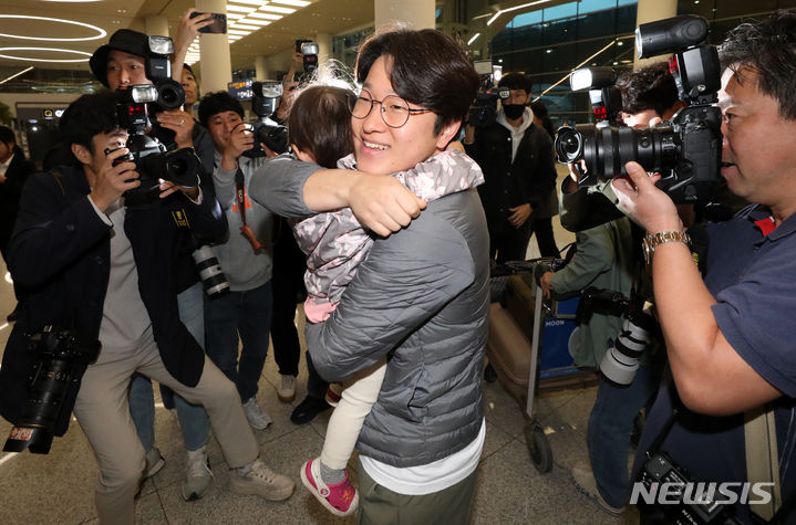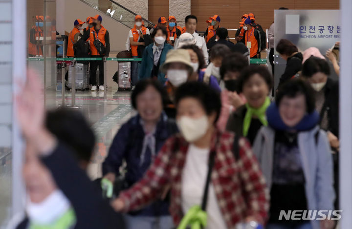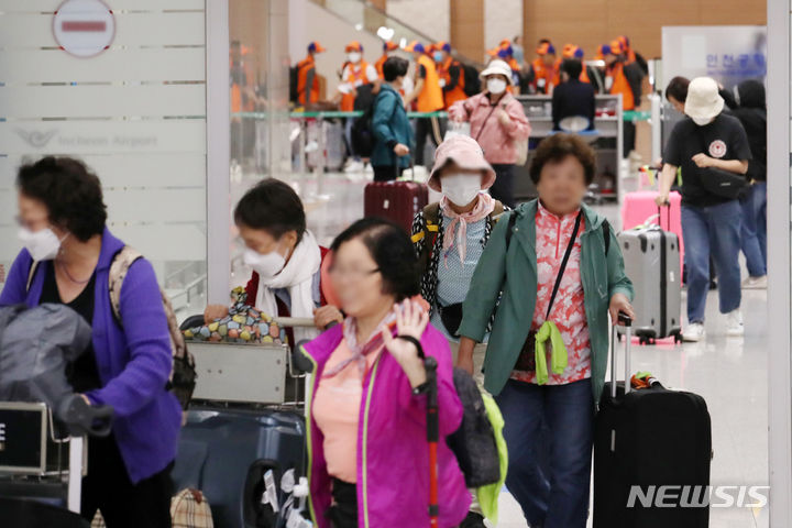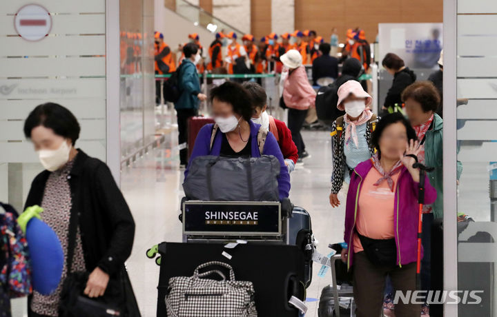 【NEWSIS】パレスチナ組織ハマスとイスラエルの間で武力衝突が続いている中、イスラエルに滞在していた聖地巡礼客など韓国人短期滞在者が11日午前、仁川国際空港第2旅客ターミナルに到着、帰国した。