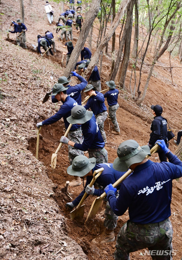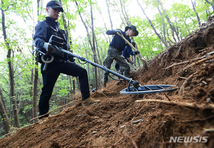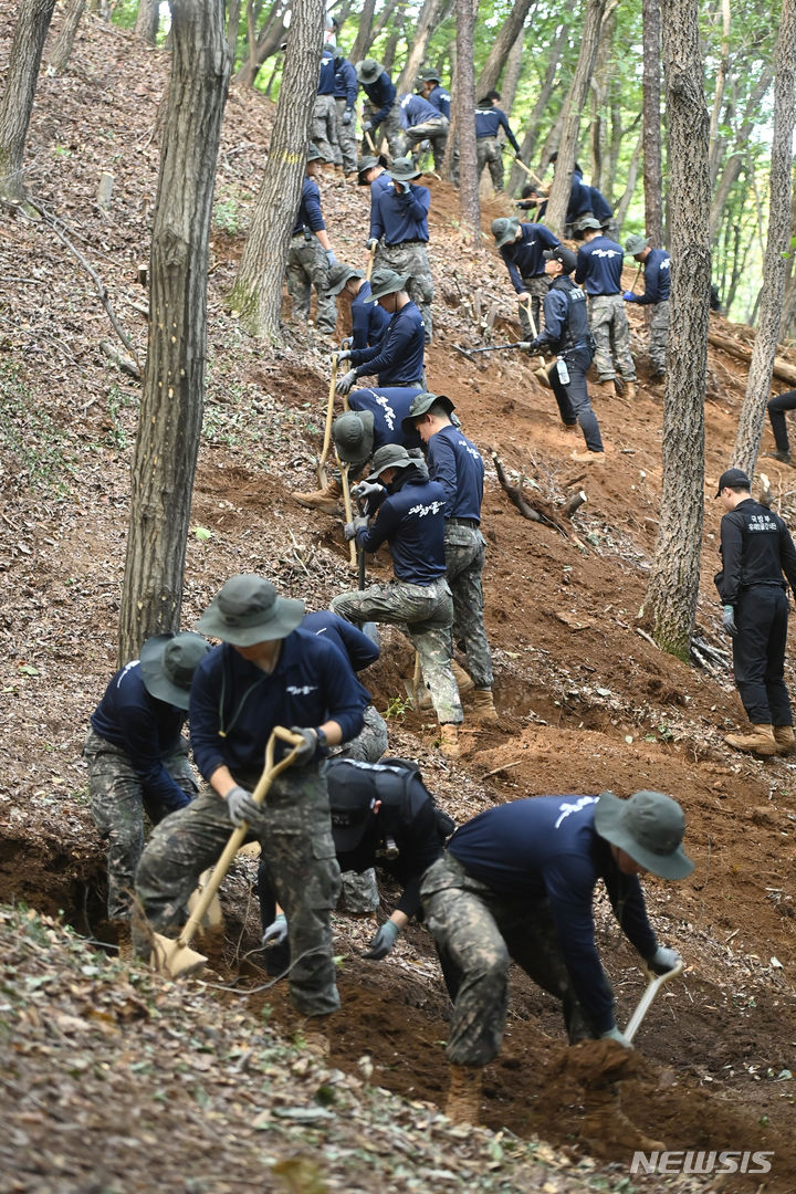 国防部(省に相当)遺骨発掘鑑識団と首都軍団の遺骨発掘チーム、第51師団の将兵たちが11日、京畿道義王市の慕洛山一帯で6・25戦争(朝鮮戦争)の戦死者の遺骨発掘作業を実施した。現在までに、慕洛山の遺骨発掘現場では完全な遺骨3体と部分遺骨1体、薬きょう、手りゅう弾の残骸、弾頭など、およそ350点の遺品が発見された。
