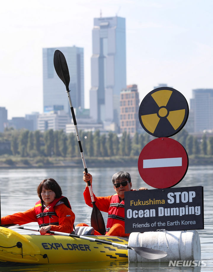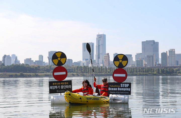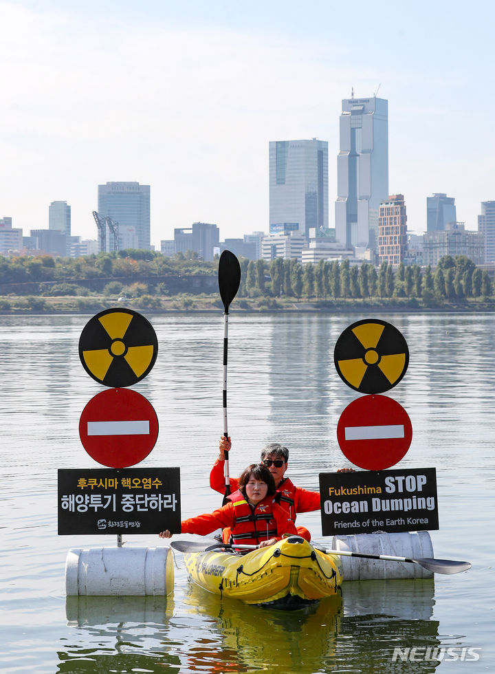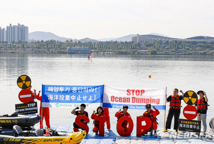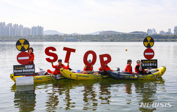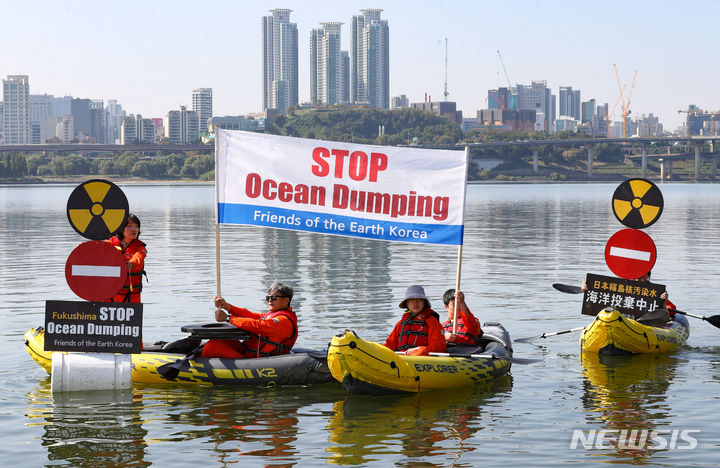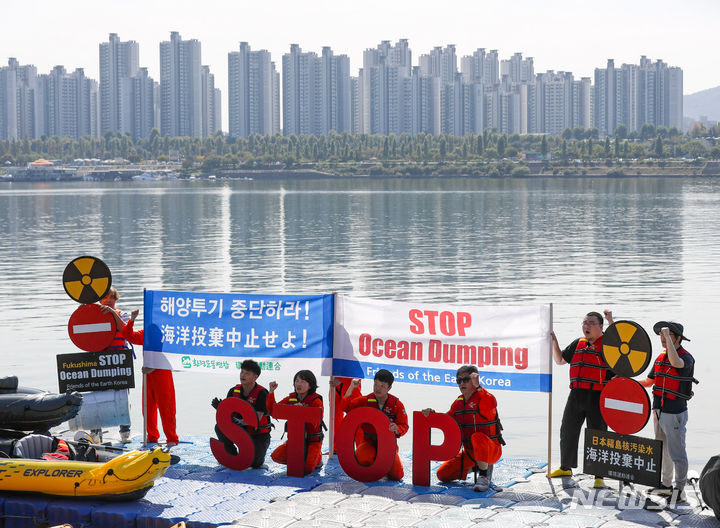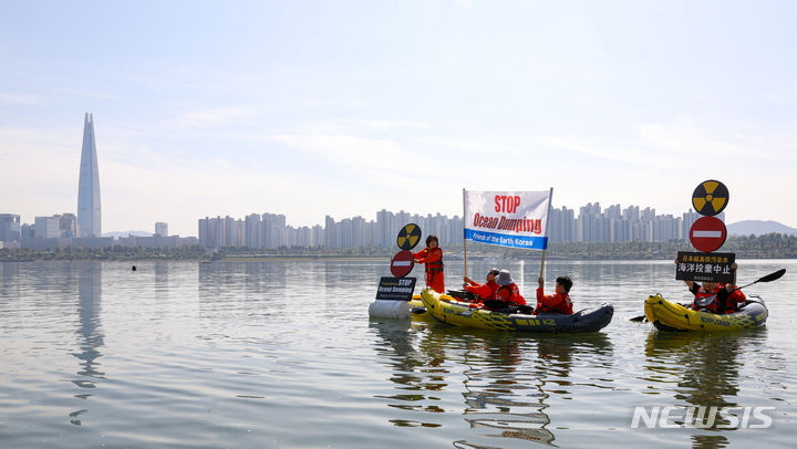 「日本は汚染水の海洋放出を中断せよ」 漢江でパフォーマンス