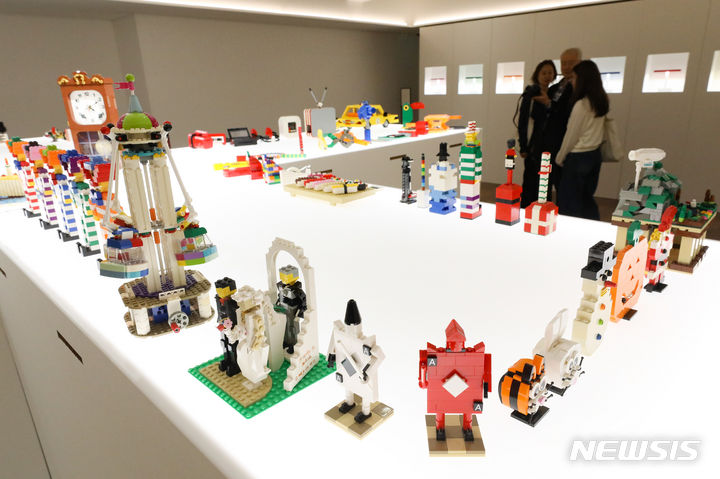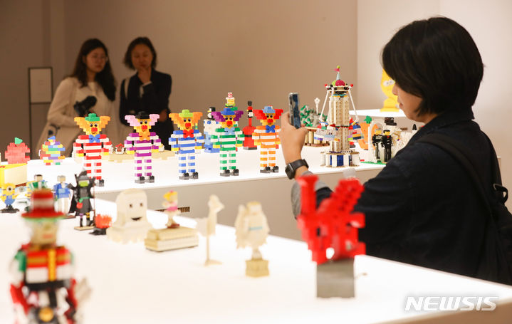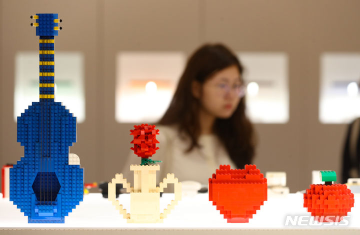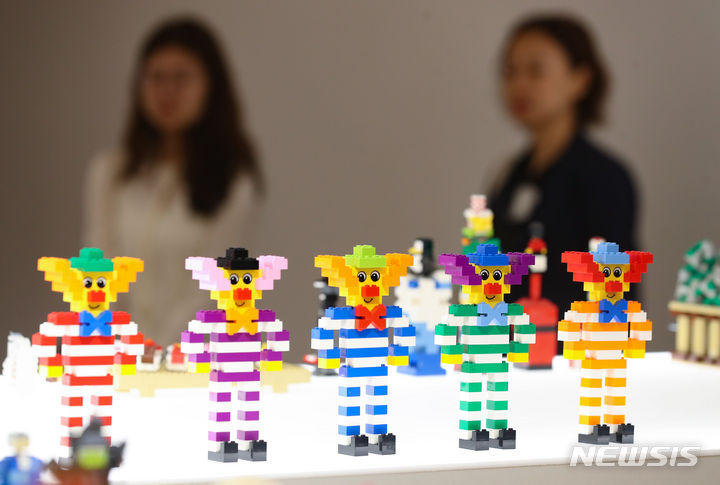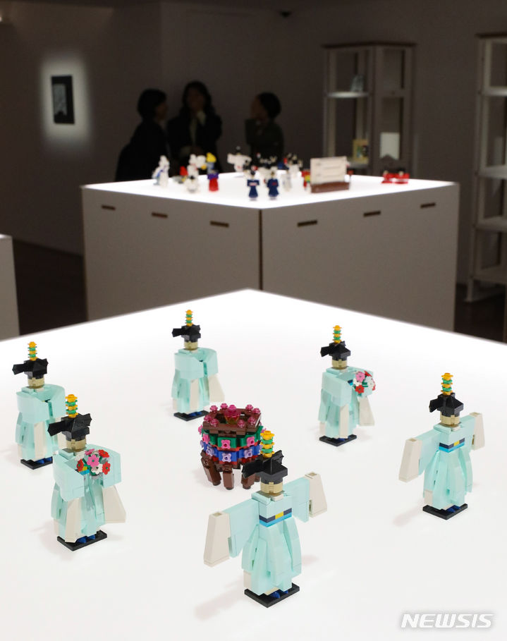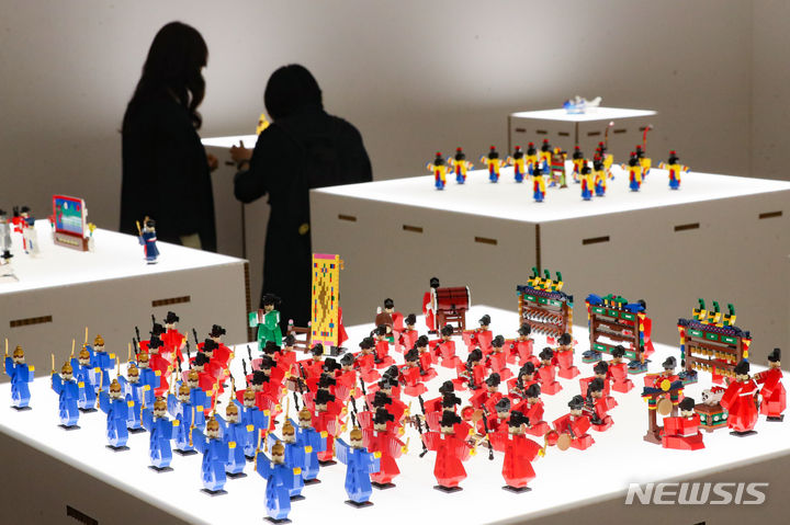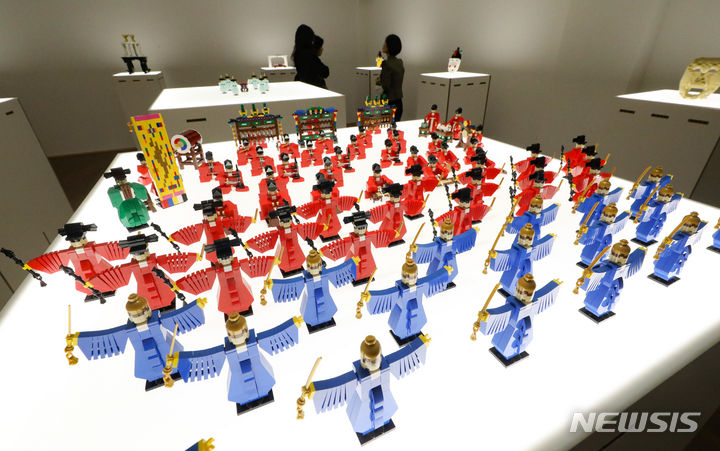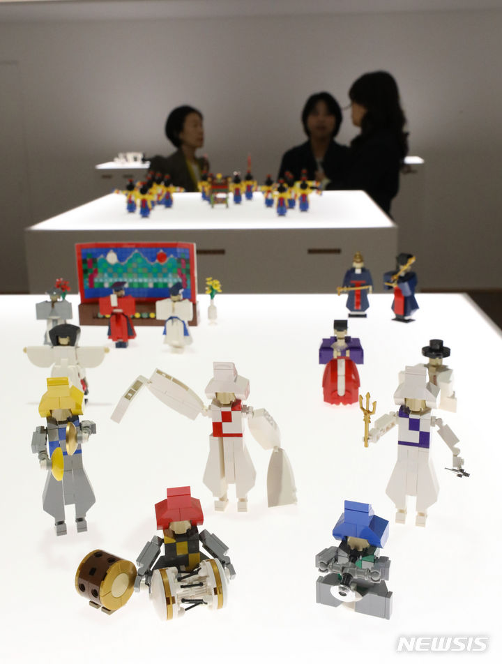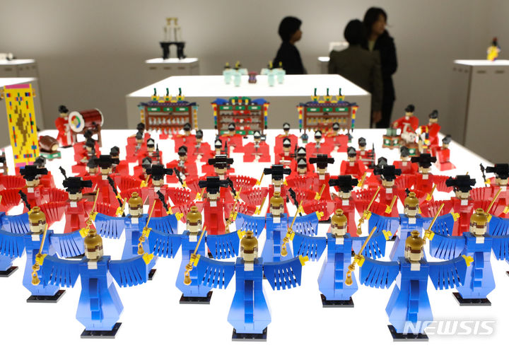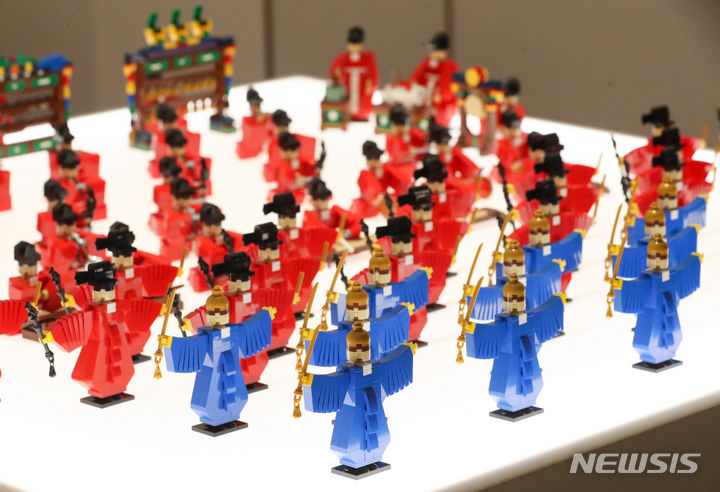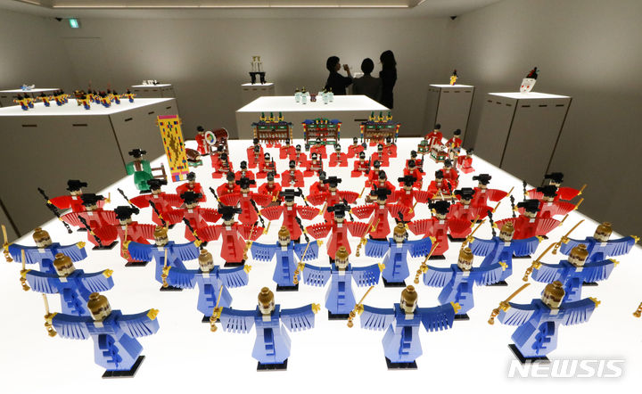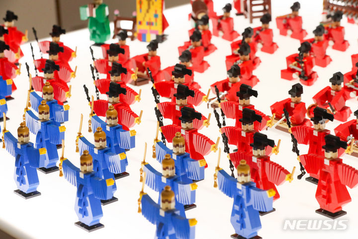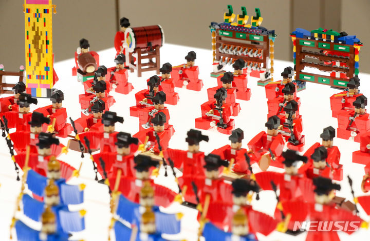 【NEWSIS】11日、ソウル市中区の慕異函(モリハム)展示館で、「コリンジンの歴史的なレゴ」展が始まった。これは、レゴ・アーティストのコリンジン=本名:ソ・ジンホ=の作品展示会だ。写真は レゴ・ブロックで作られた「宗廟祭礼楽」などの作品。