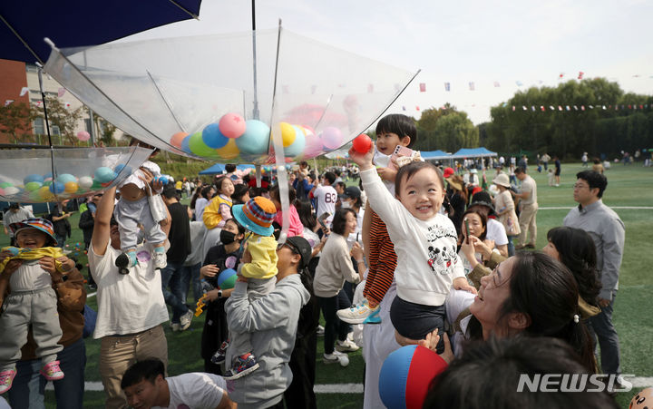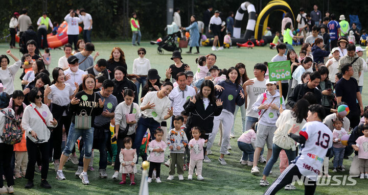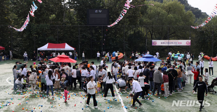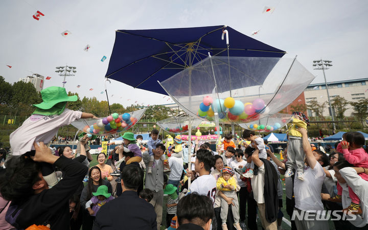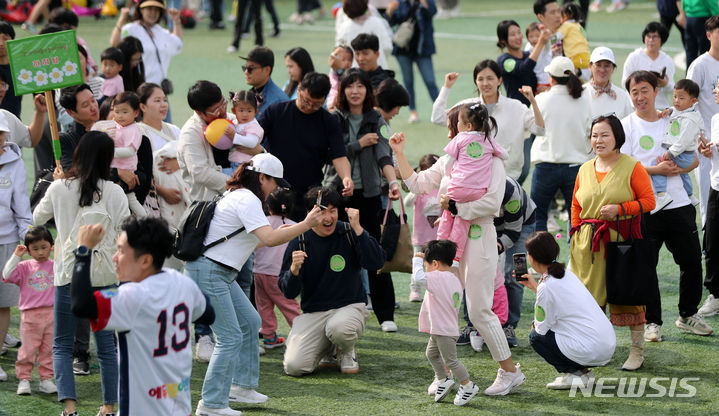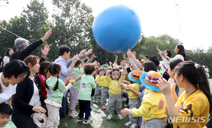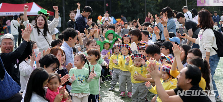 ソウル市内の松坡女性サッカー場で13日、松坡区主催・松坡区家庭保育園連合会主管による「小鳥たちの遊びの広場」秋の運動会が行われ、参加した子どもたちや保護者、保育士たちが競技に臨んだ。