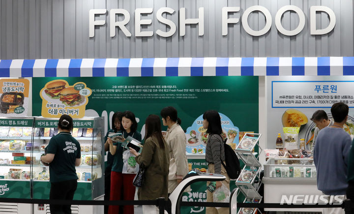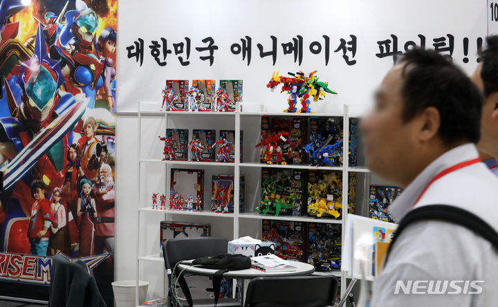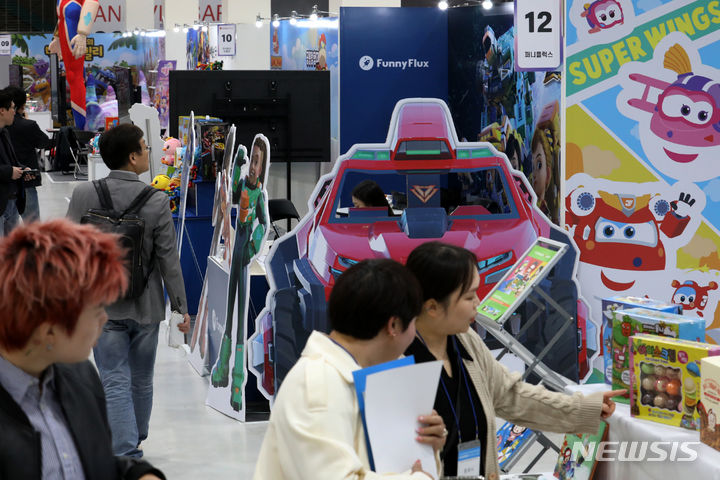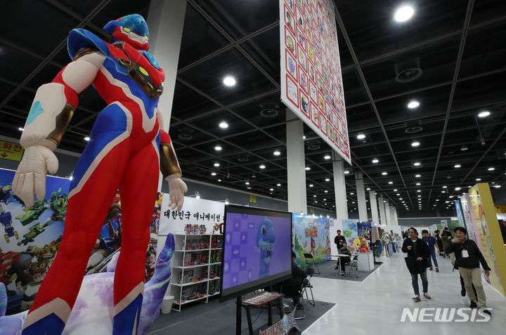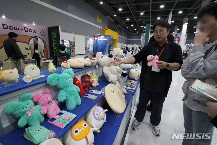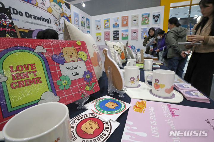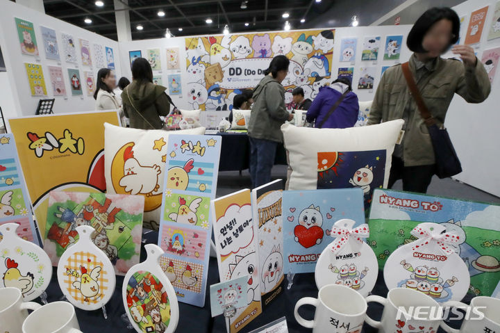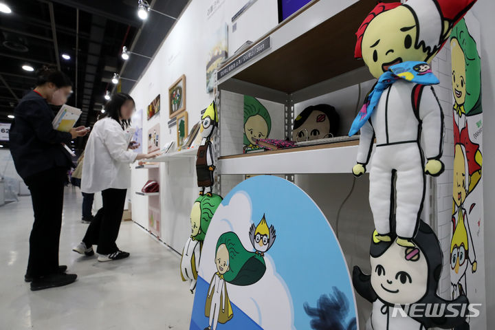 18日午後、ソウル市瑞草区のaTセンターで開かれた「アイ・ラブ・キャラクター・ライセンシングショー2023」を訪れて各ブースを見て回る人々の様子。