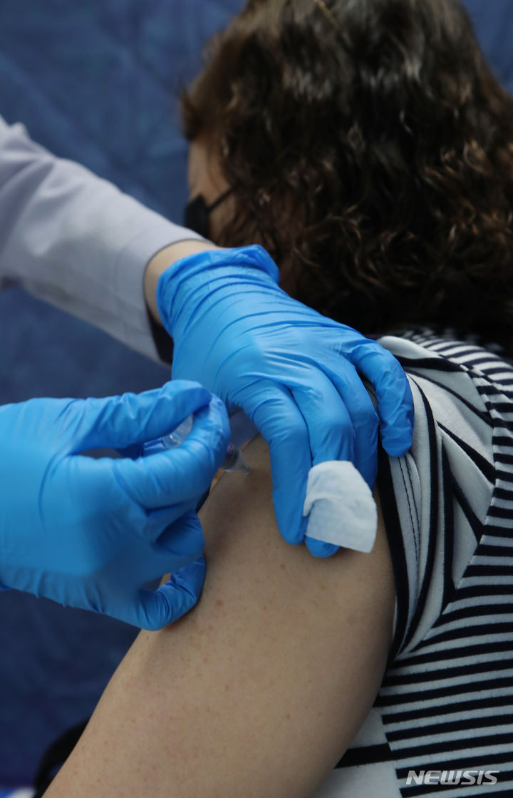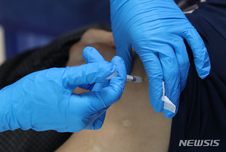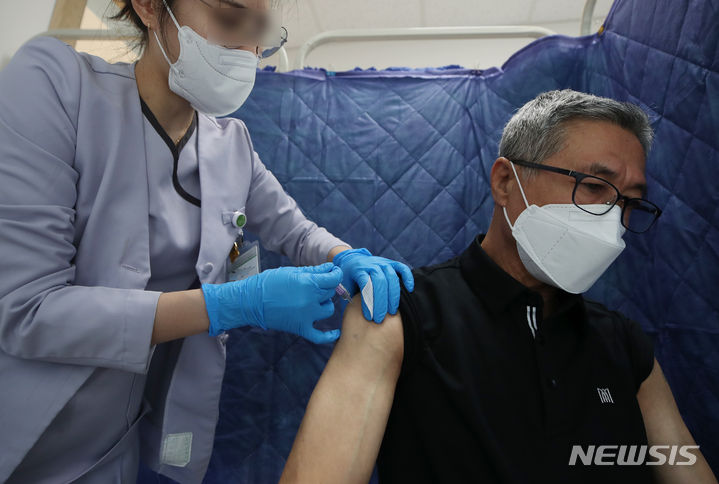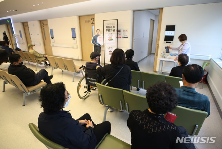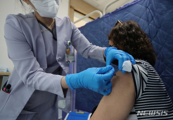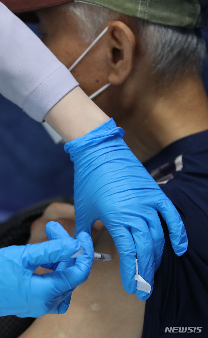 ハイリスク群を対象に新型コロナワクチンの接種が始まった19日、ソウル富民病院を訪れた高齢者が接種を受けている様子。「2023-2024シーズン コロナ19予防接種推進計画」により、この日から来年3月31日まで、冬季の全国民対象無料接種が実施される。特に、65歳以上の高齢者と12-64歳までの免疫低下者、感染脆弱施設の入所者および従事者は、この日から優先的にワクチン接種を受けられる。
